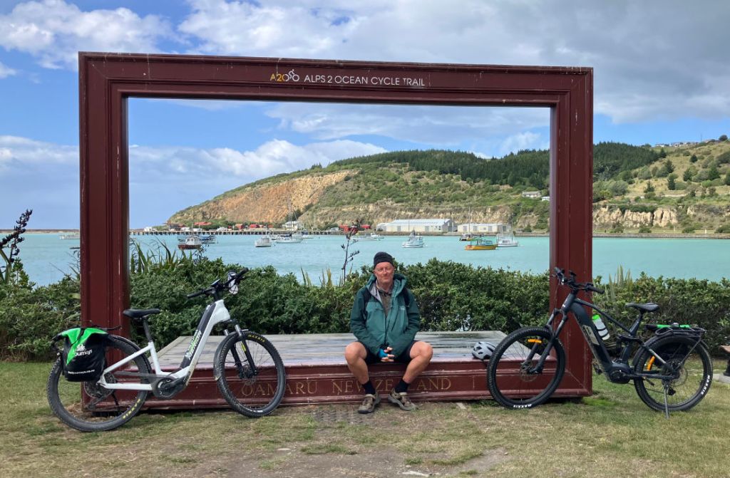 Eventually we reached the Pacific coast at Oamaru, the unheralded Steam Punk capital of the southern hemisphere. As we chowed down on a celebratory lunch in the cafe at Holmes Wharf jetty, successive groups of A2O-ers followed us up to the finish line to snap photos (below). Doubtless they’d all enjoyed the A2O as much as we had.