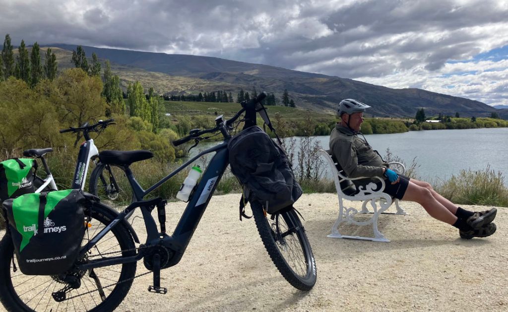 One misstep here would see a long tumble down the steep stony slope into the water. We came across a couple of accidents – one was possibly an ‘Selfie Insta Back Flip’ – a short tumble onto the rocks which left the old rider concussed and confused. And just 500m on a woman had gone off the edge but was luckily caught by a shrub. Soon we heard the drone of a helicopter coming in to take them both to Dunedin hospital where we heard later all ended well. This is not a stage where you’d want to start off in Turbo mode by mistake. Just touch the pedals and an e-bike can shoot ahead quicker than you can catch it.