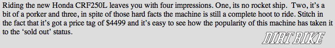 Honda CRF450L – the new DR-Z400? [nope]