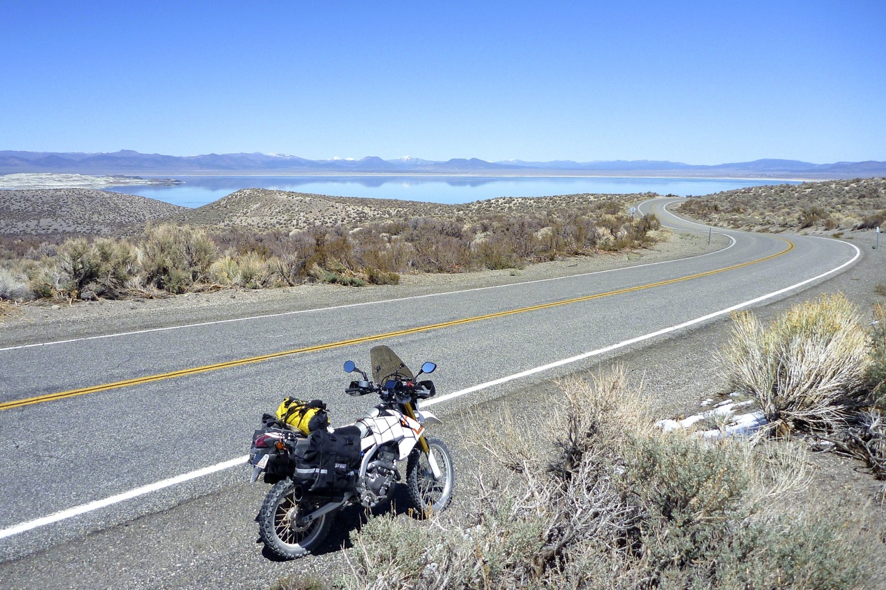 Wasn’t sure where I was heading today other than up Highway 395. I had two days to get near Roseville near Sacramento for a talk at a moto shop. Al had recommended a ride up to Mammoth Lake and I wanted to check out Mono Lake which I’d read about recently in Mark Twain’s Roughing It.