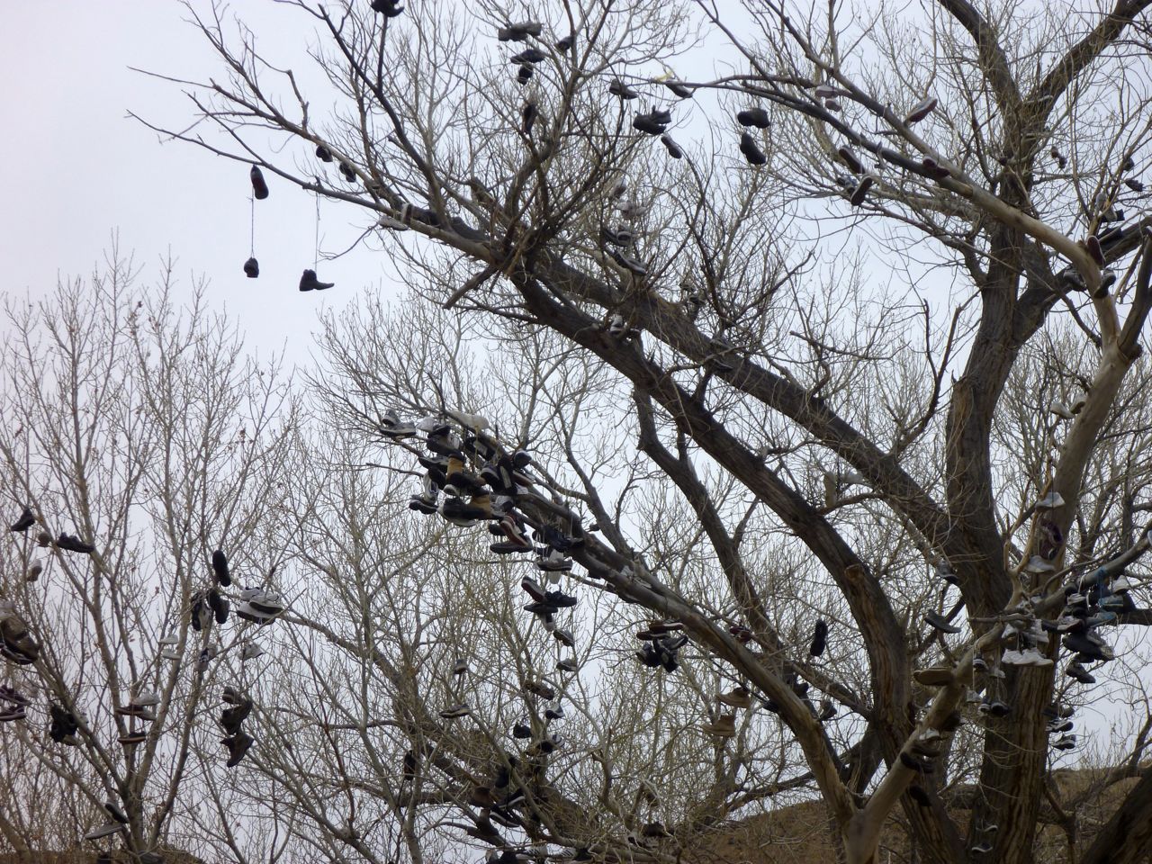 Soon I pass the Nevada Shoe Tree. Got some smelly old trainers? Chuck ’em up here.