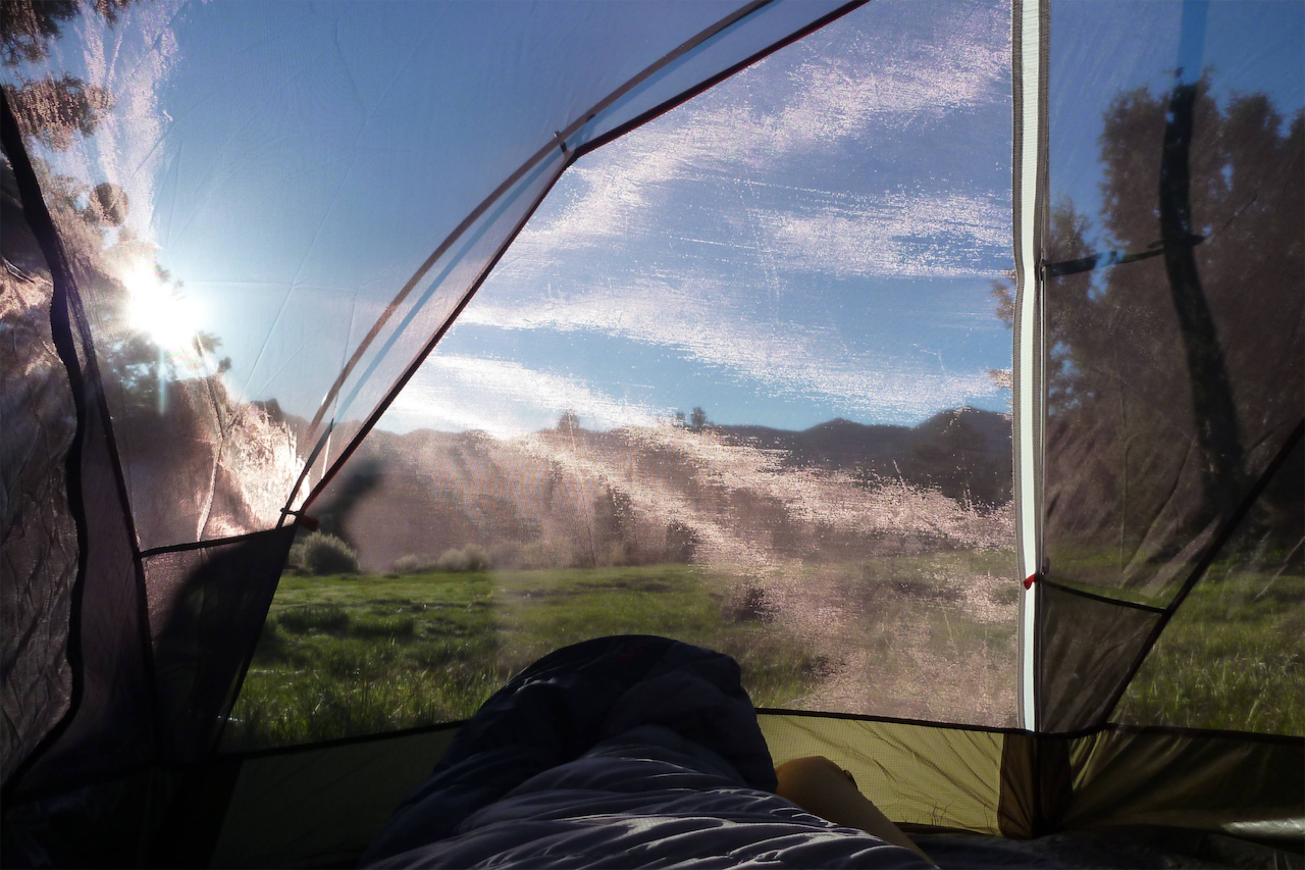 I thought I brought my fly sheet only (more space) but I had my inner (less bugs). As long as it’s not raining it’s a more agreeable way to wake up.
