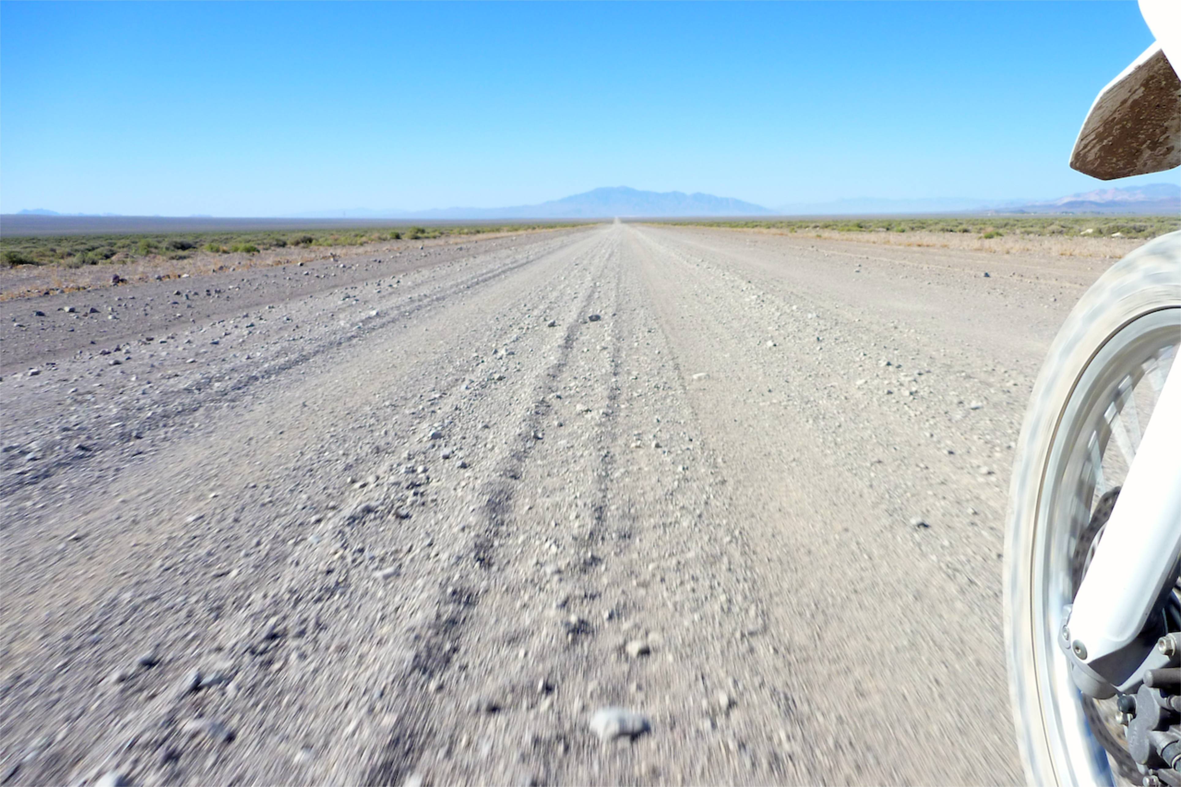 I emerge from the mountains and follow a network of gravel tracks south to Tonopah where I hope they have wifi with the fuel.