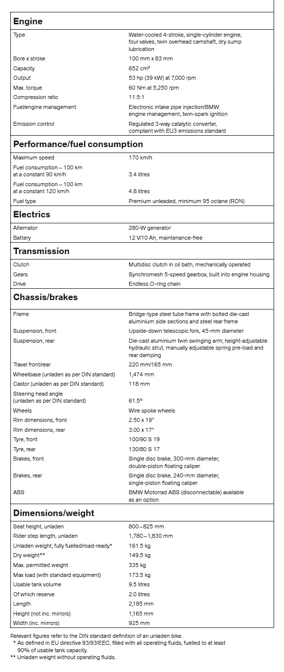 I like to think the X bikes are belatedly becoming recognised as an under-rated travel bike for the simple reason that, compared to the post-Funduro F650s and the current G-GSs which followed after a two-year hiatus in the UK, the X bikes were powerful and light. With bathroom scales I combined the upright wheel weight on my ABS machine (as I did with my GS500R) and came up with 163kg with a full tank, very close to the official wet figure. Deduct the 9 litres (6.5kg) and you get a more broadly comparable 156.5kg dry. The only accessories my bike has are plastic hand guards so let’s call it 155.5kg. Compare that to the following claimed dry weights.