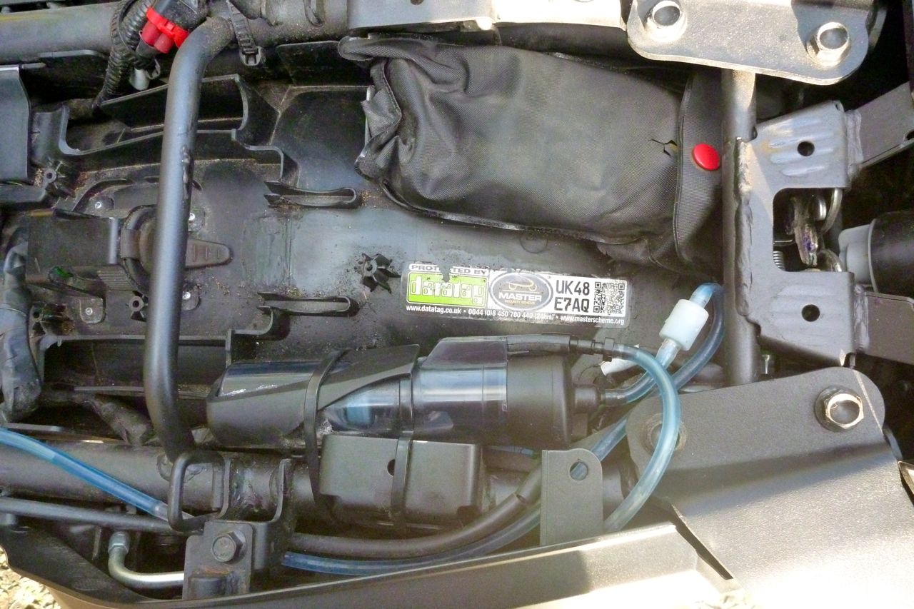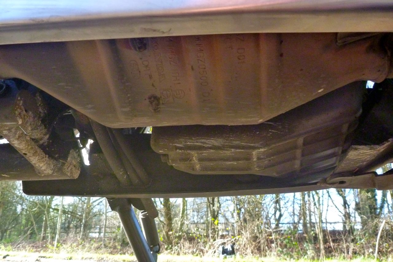 Back on the ride, I pulled over to have a closer look. On its 17-inch wheels the 500X is low on ground clearance. Down below the cat or collector box is on a level with the sump (right), though that’s nothing a slab of 5mm of dural couldn’t see to.