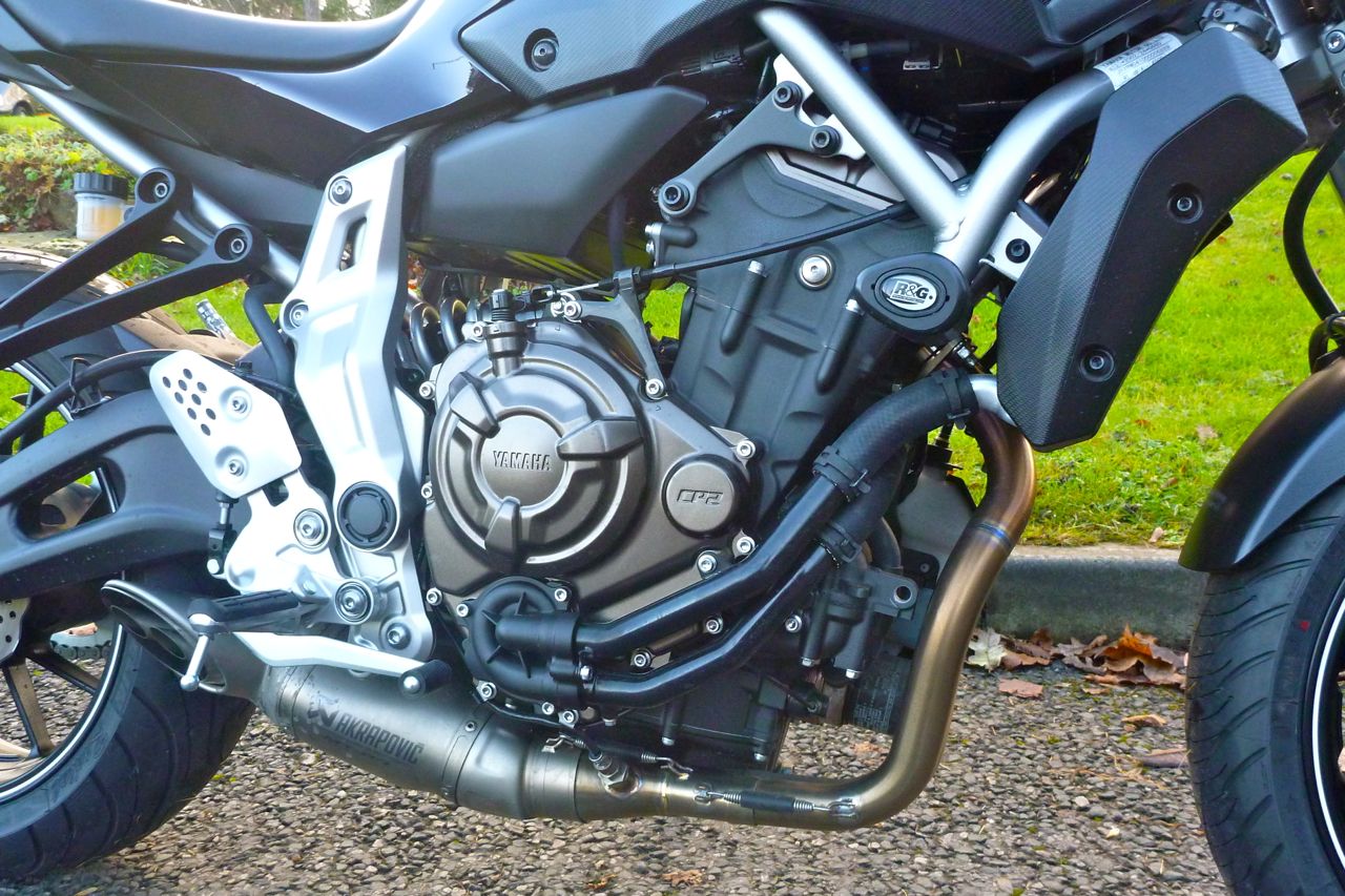 As expected, the second the bloke fired up the MT’s engine I got it, I got it all: that intoxicating offbeat throb held a promise of good things to come. This was a short ride on a bike less than 100 miles old along grubby country lanes and speed-humped roads littered with wet leaves and still damp in the shadows. They led to the old B2031 out to Kingswood and Box Hill where I recall trying out a booming J&R cannon on my XT500 nearly 40 years ago. In these conditions I distinctly felt that this ‘Big Bang’ traction theory had something going for it. There was a sense that the engine power pulses made it easier to feed and feel the traction, compared to the electric-smooth Honda I’d ridden an hour earlier. And the fantastic but non-offensive sub-J&R exhaust note had me  blipping the throttle between gear changes just for the sheer fun of it.