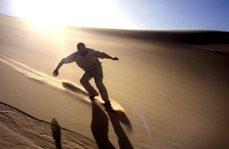 Jon dunesurfing on Erg Killian