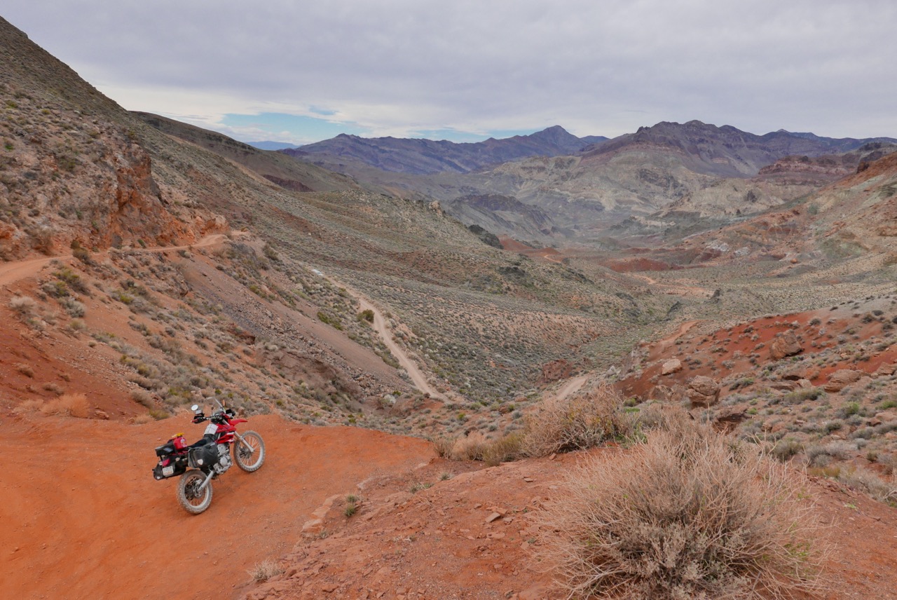 Today I know exactly where I’m going. Up to Beatty for the Titus Canyon track which  sneaks into Death Valley from the east. Other all-terrain recreationists are out in force today. I realise later I could’ve cut through Ash Meadows on the way to Beatty for a bit of dirt relief, had I studied the Southwest GPS map more closely last night on Base Camp. But out here there are no bad route finding decisions. Smooth dirt or broken asphalt, spin a bottle; it’s all good.