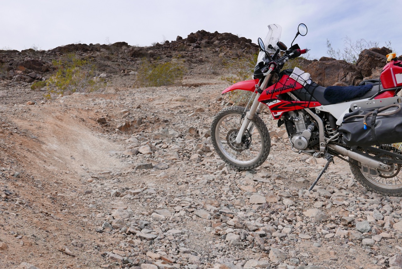 With the KLX set up, I took off for a few days. The plan was to explore the Mohave desert between the Arizona border and the Sierra Nevada. Along with Baja, this has been an unfulfilled biking destination for as long as I’ve been trail biking.