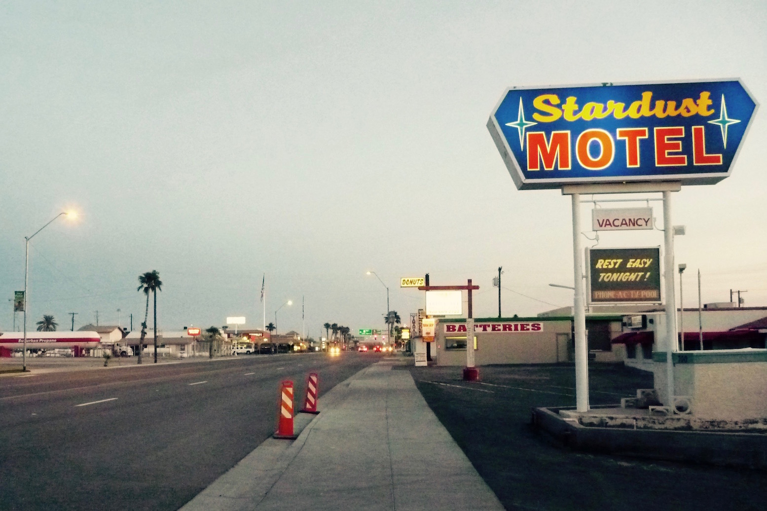 I’m resigned to dosing in an abandoned trailer or gas station, but Baker turns out to be less popular than I thought. At the motel he accepts cash and drops a card deposit as I’m ‘not a local’. Baker seems to have every brand of fast food going, apart from the Greek place. Over the road a waitress squeezes me out a Mexican meal from a big tube.
