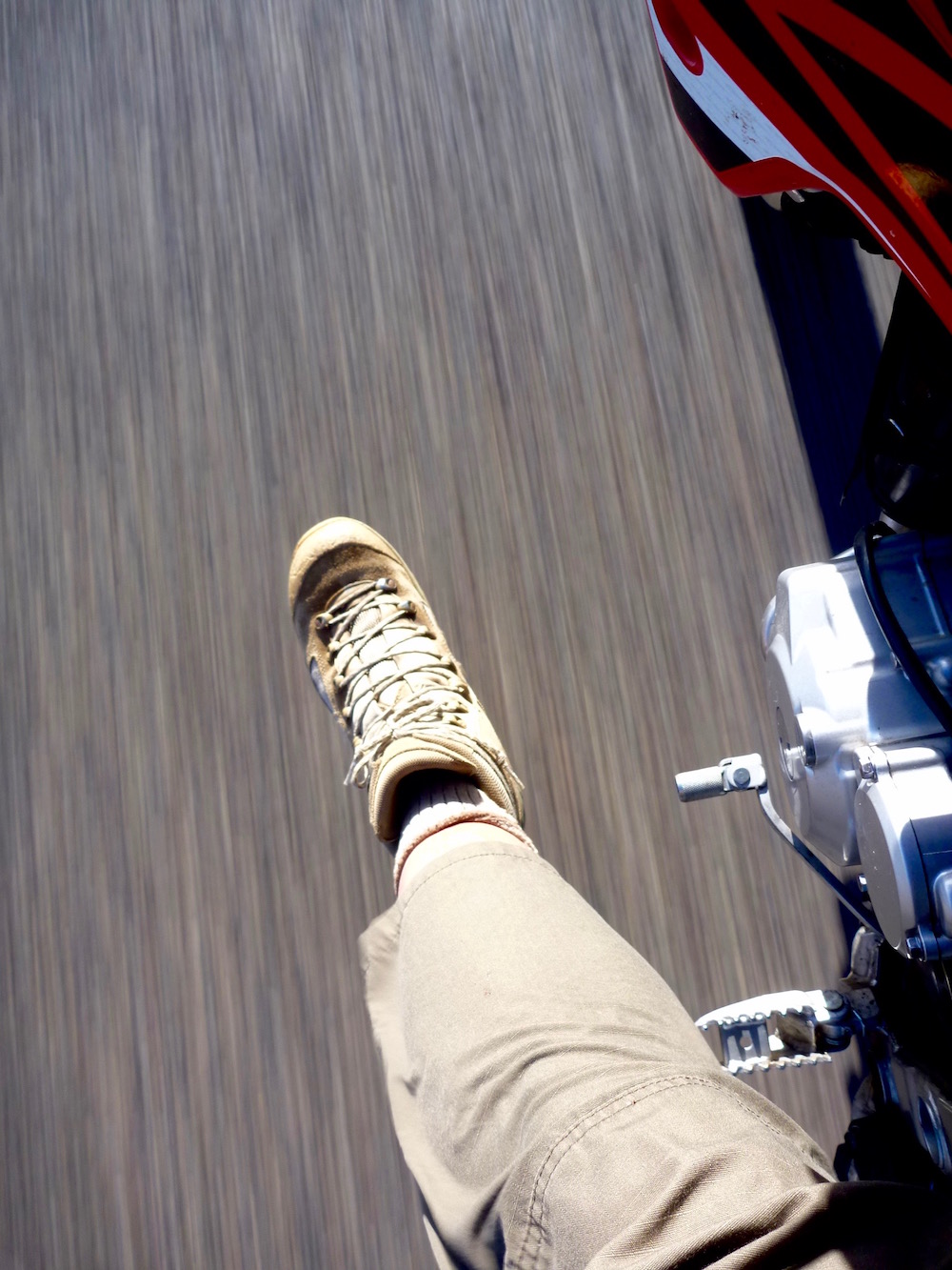 With a can on the back, to pass the time I decide to run the bike dry: only 125 miles but 88mpg (73US). Not bad I suppose. I snatch a few extra miles by coasting to Baker, enjoying the cycle-speed breeze. I’m not achieving a lot today, but no one’s watching.
