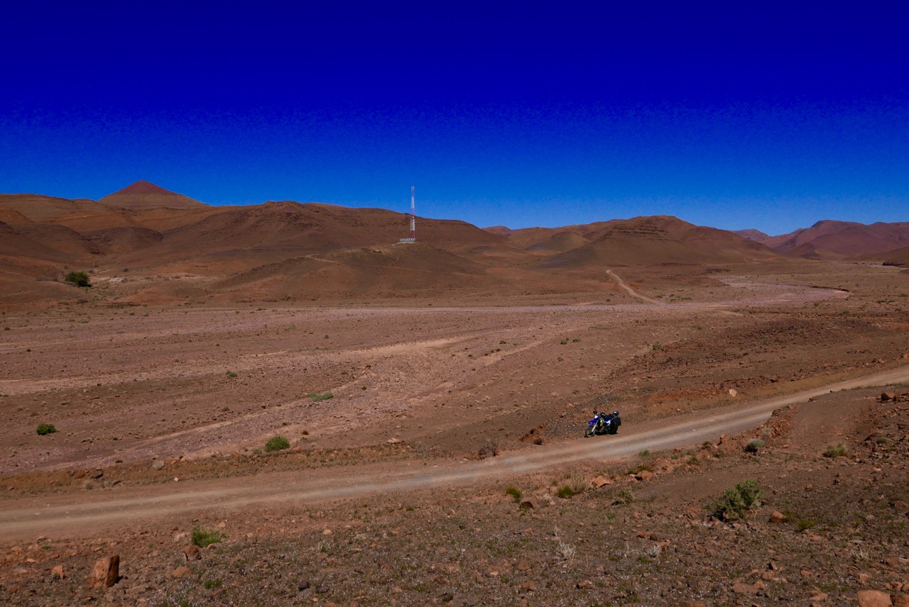 I pop out on the south side overlooking the headwaters of the Oued Draa near Ouarzazate. There’s a huge new solar farm down there.