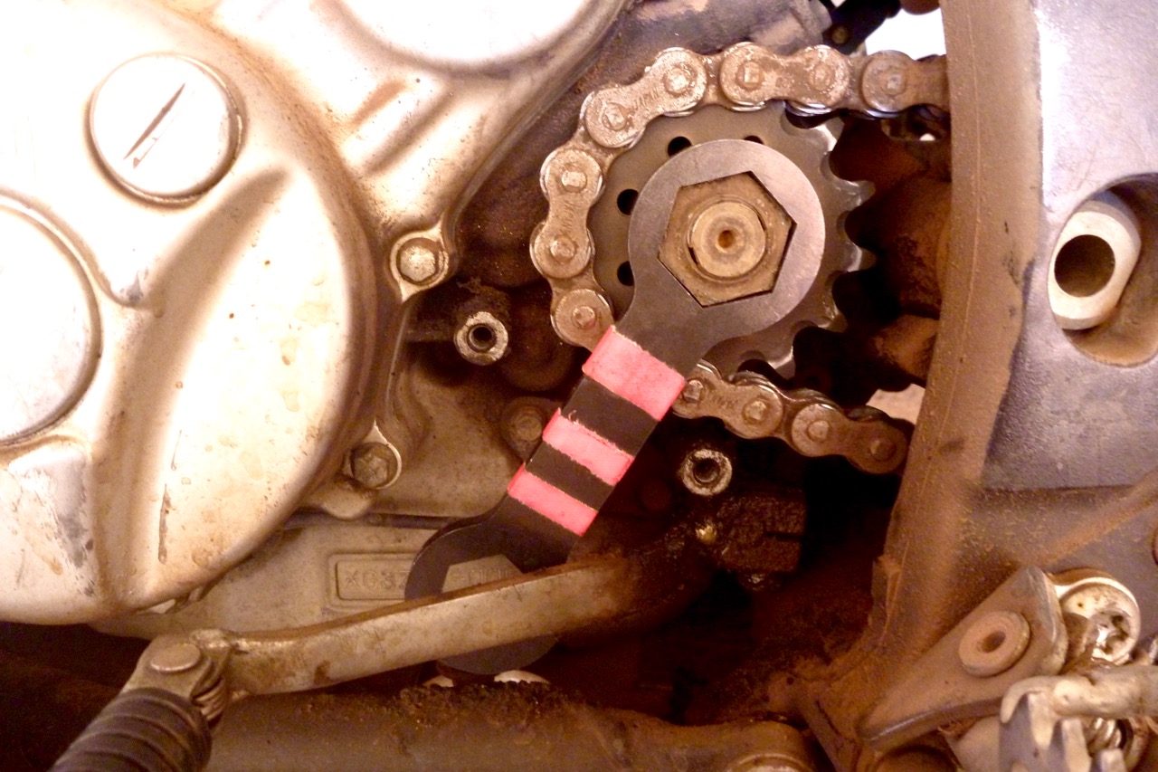 But the flat wheel wrench won’t fit – who’d have thought? – so I nip into town to blag a 27 socket as there’s gnarlier dirt to come…