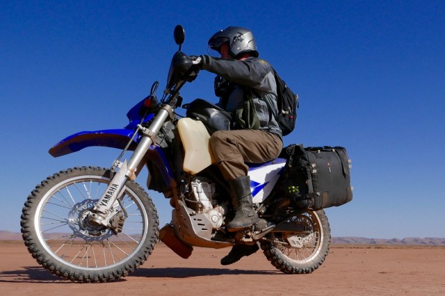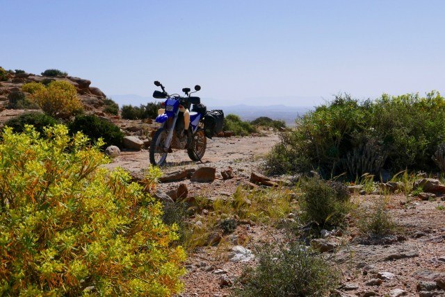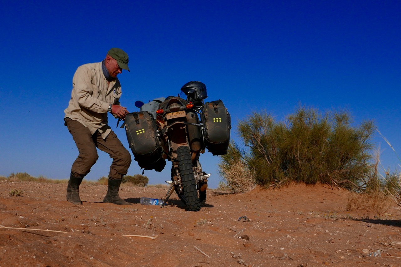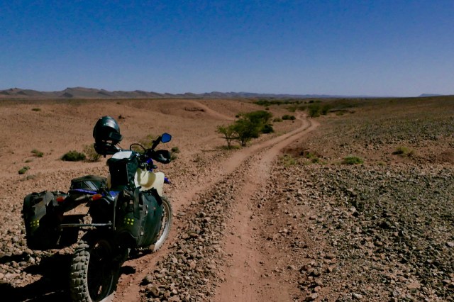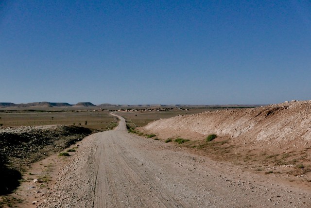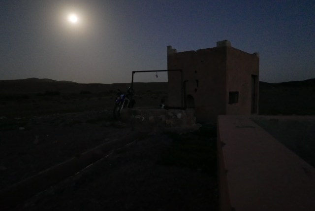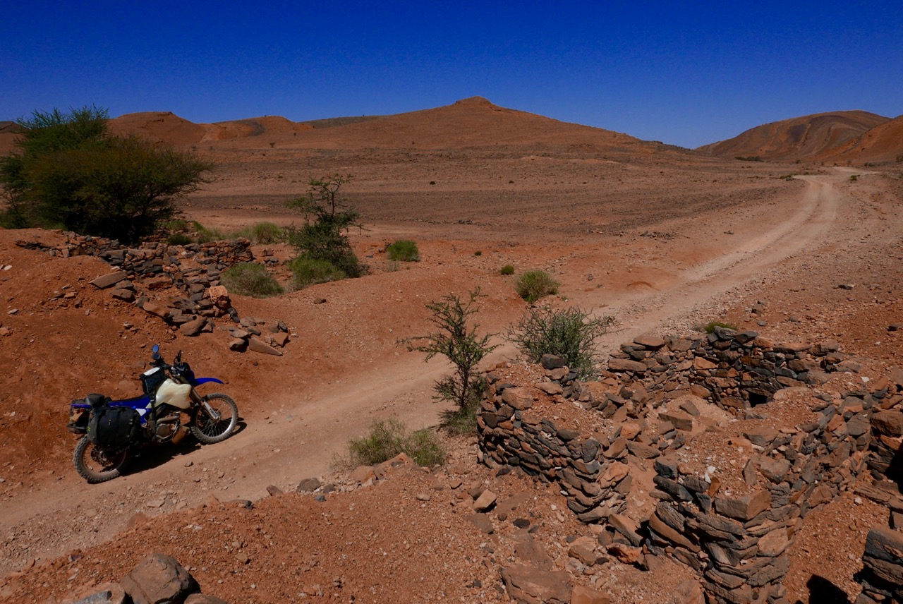 I pass through an old fortified berm from the Polisario war. In fact there are still landmines hereabouts, I learn later. Cross-country riding was not such a good idea.