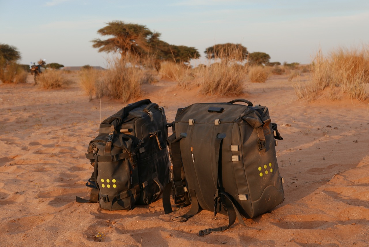 I’m testing prototypes of Kriega’s new OS32 panniers on a Tusk rack. All good so far: rack is solid, bags are massive and rugged, strap on securely and easily via a plate, but come off with minimal faff too.