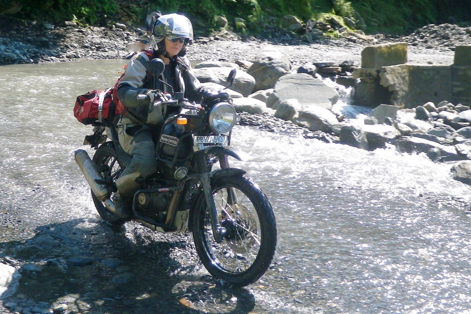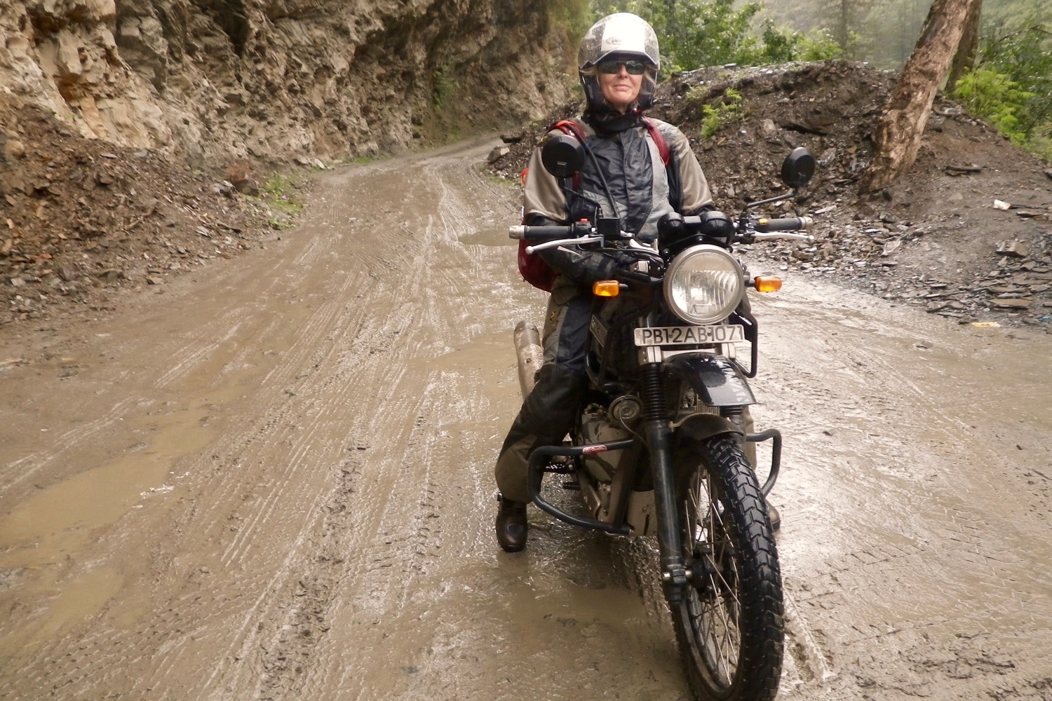 On muddy ruts and wet grass you just have to take it easy or you’ll end up as on the right, but they’re helped by the gentle power delivery; it’s almost like having traction control. The Himalayan does not, of course, have traction control, ABS (in India at least), power modes, suspension modes or any a la modes, but manages fine without them.