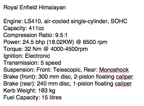“Our single biggest insight in all these years of riding has been that the best motorcycle for the Himalayas is not one that tries to dominate its landscape, but one that is able to go with its flow. … With its purpose-built ground-up design, the Himalayan is a simple and capable go-anywhere motorcycle that will redefine adventure touring…”