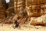 Once geared up, leaving Illizi we were thrown in the deep end with a short but sandy ride to our first dune camp. Those new to sand or who’d not ridden it for ages – like me – were a bit startled but eventually remembered what to do: gun it and hold on. The XR felt light, well sprung and reasonably responsive (this was on road pressures), though not enough to make me want to blast up wayside dunes for the hell of it. Most of us felt the same way; there was plenty of rugged riding ahead.
