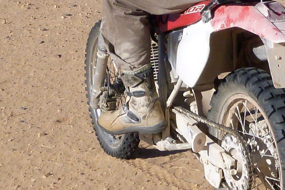 When it came to standing and riding over rough terrain, as long as the pegs are larger-than-standard the Bajas supported my feet comfortably and with no pressure, just like a proper MX boot. Elsewhere, the instep gets sore after a while.
