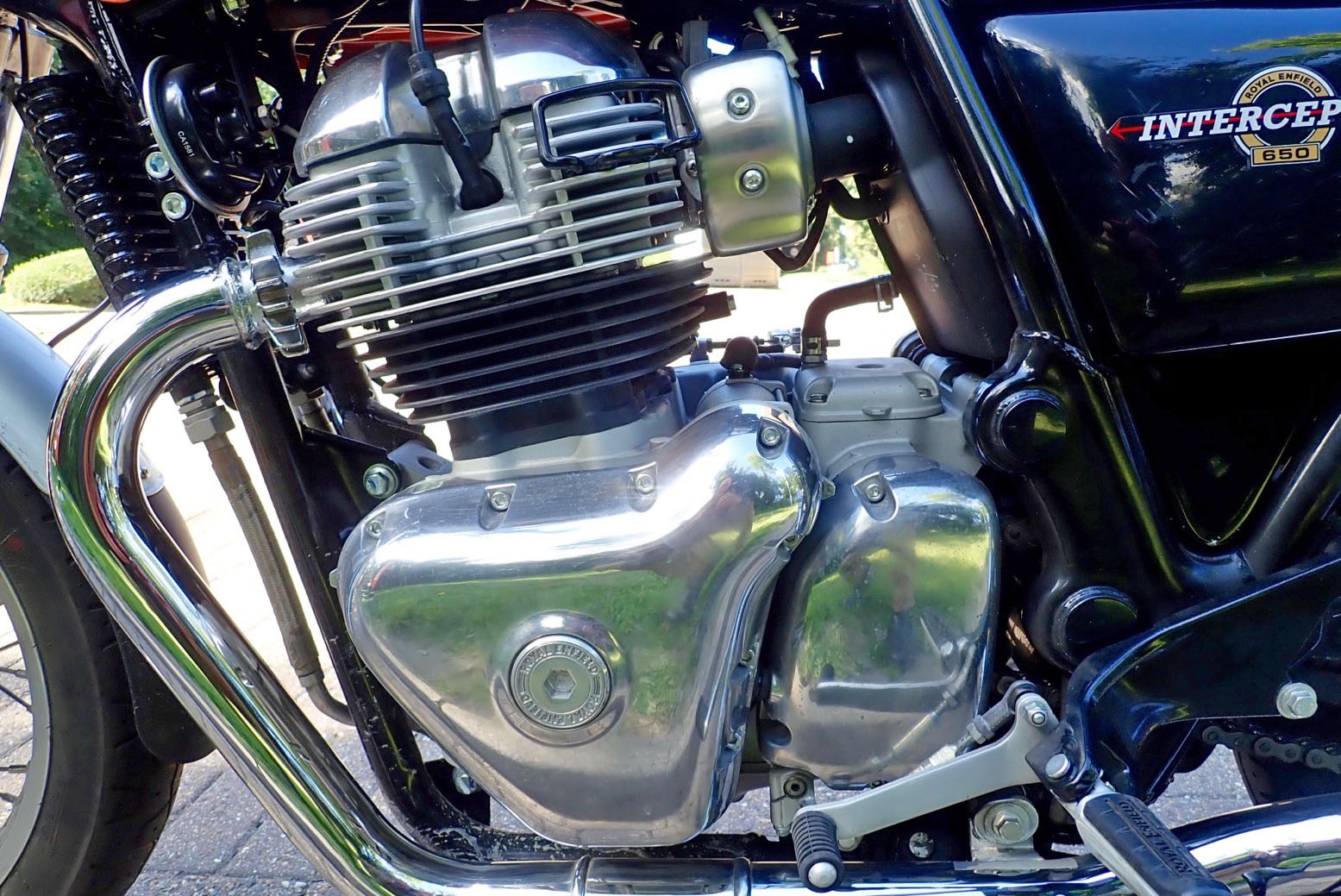 The first thing that struck me pulling away on the 1300-mile-old Interceptor was how uncannily smooth the motor was. It was almost disappointing that the 270° mill’s character had been so well disguised. The other observation was how exceedingly heavy the steering was. Surely not normal. The front Pirelli looked OK, but I know tyres can appear fine and even feel firm but be down by 10psi.