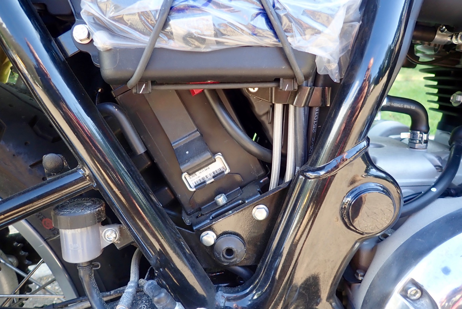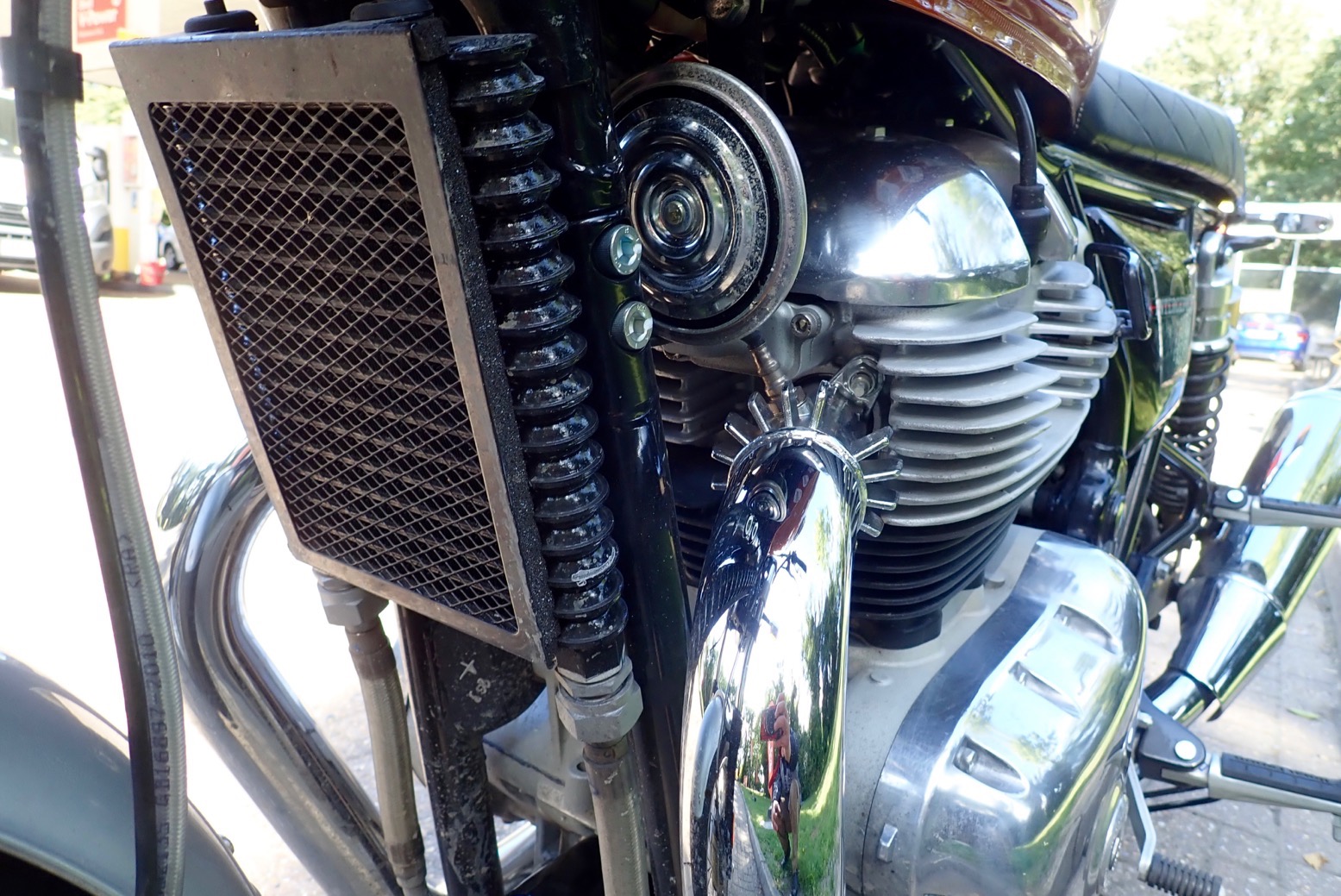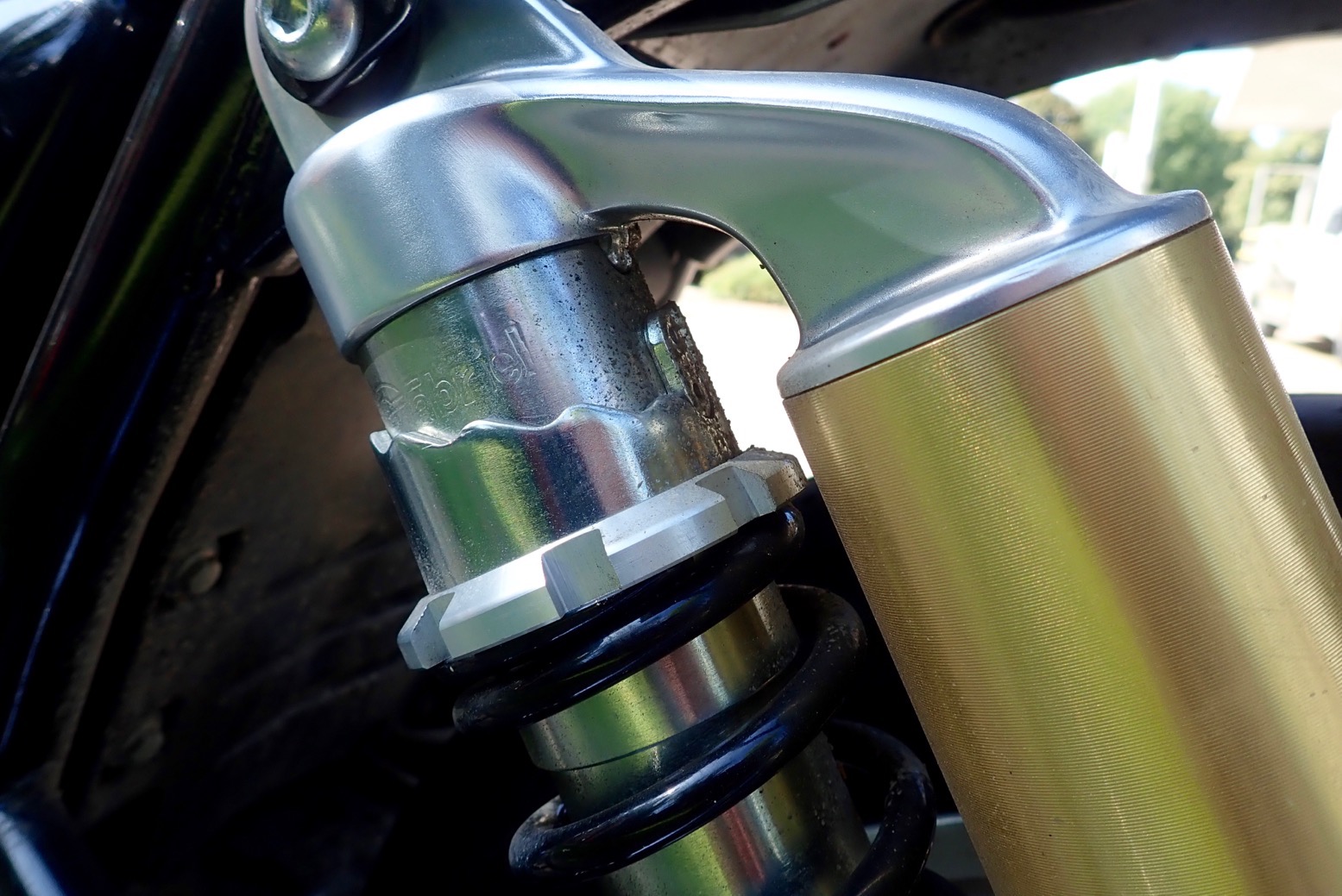 Looks-wise, the orange tank with an RE badge and liberal chrome/alloy elsewhere doesn’t do it for me. I’ll take the more recently available batch of pinstriped and painted tanks, especially the black and red with added noire (left). And those bars look like something off my old TS185. One journalist reviewer parroted how the 650s go through no less than a ‘1007-point post-assembly inspection’ to make sure everything is absolutely in order and aligned. Maybe it’s just me, but you’d think they could take a couple of minutes to align the handlebar brace correctly (below). Luckily other bars are available and Triumph twin specialists, TEC have produced a range of 650 accessories, some useful, others just cosmetic but including shocks for just £150.
