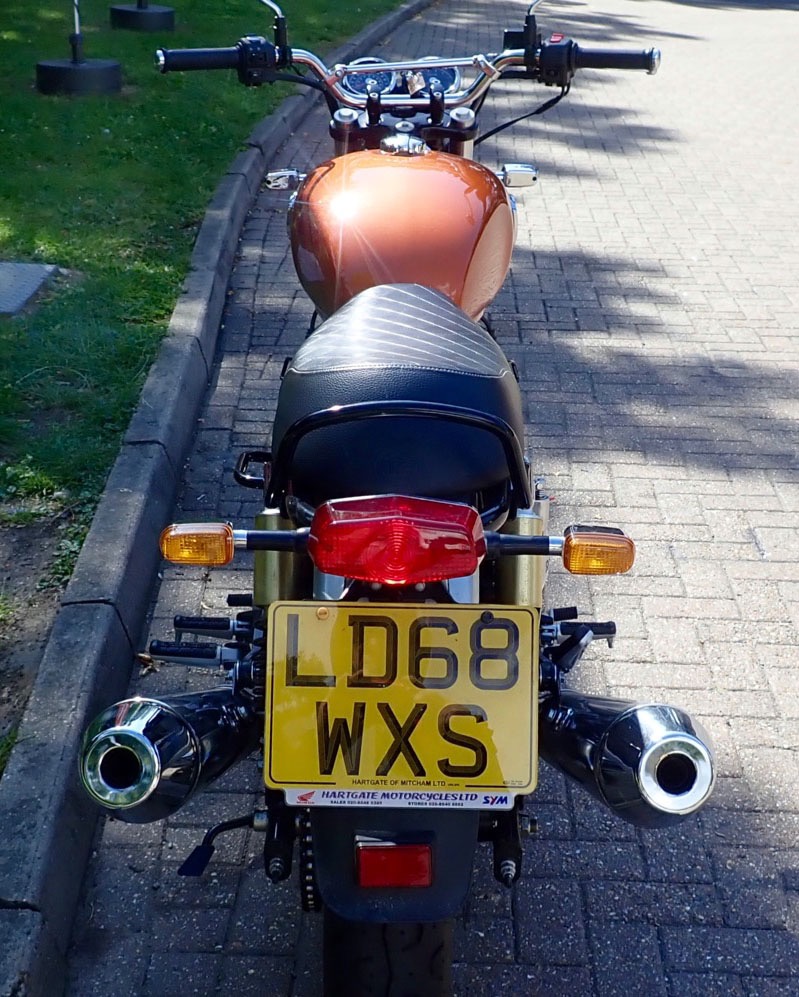 The seat height of 804mm (31.6″) is nice and low but the bike felt quite small which made me feel a bit exposed after a fortnight riding a plastic-clad NC750X. The motor ticks over steadily (no ineffective Himalayan-style cold-start aids here, just proper efi). It revs freely and the gearbox is amazingly slick with zero slack or lash in the drivetrain, something that spoils so many bikes. It means once rolling, clutchless upshifts take just the merest nudge from the foot. I’ve never ridden a bike which does this so easily.