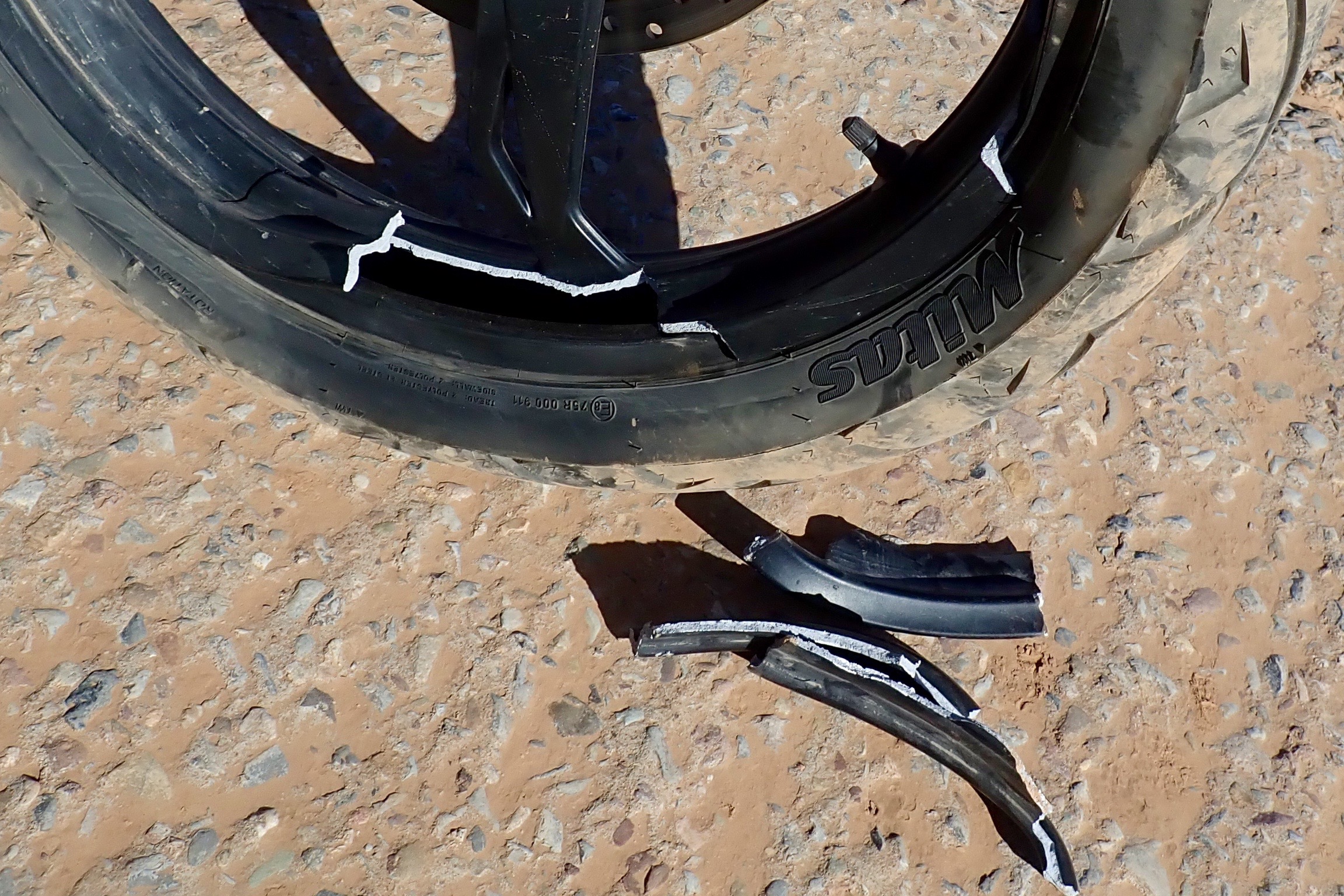 Bike problems over a cumulative ‘21,000km’ (1200 x 3 x 6) included a persistent flat battery on the same bike which we deduced must be down to an intermittent electrical fault somewhere, probably as a result of vibration from rough tracks. There were no punctures on the Mitas Terra Force TL tyres and one smashed front wheel from an unlucky fall which smacked into a square-edged rock. Oh, and another sidestand failure (a known 310 weak point and new frame warranty) literally coming to a halt back in the garage and even though they’ve been strengthened.