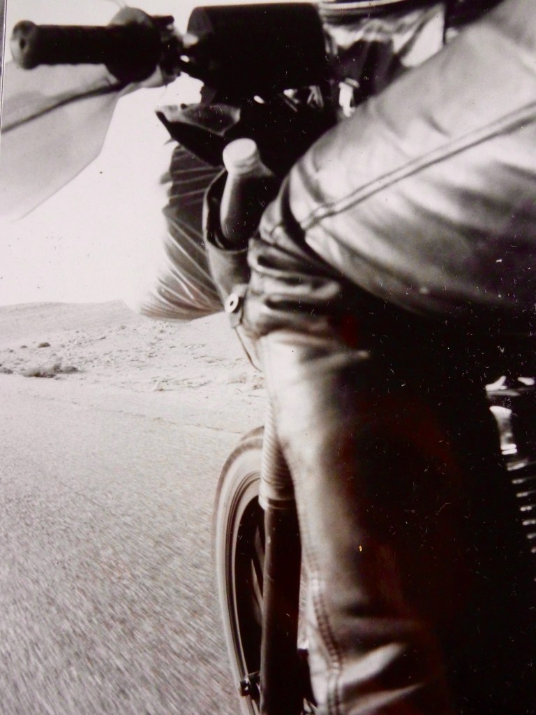 I was already tired, thirsty, sore and hot when up ahead what looked like a huge wall of sand hundreds of feet high hurtled right across the blacktop like a train at a level crossing. Only as I neared it did I realise it was the mother of all whirlwinds, a huge cauldron of rotating sand. I turned the wick up and the motor droned as I punched the Benele into the sand wall.