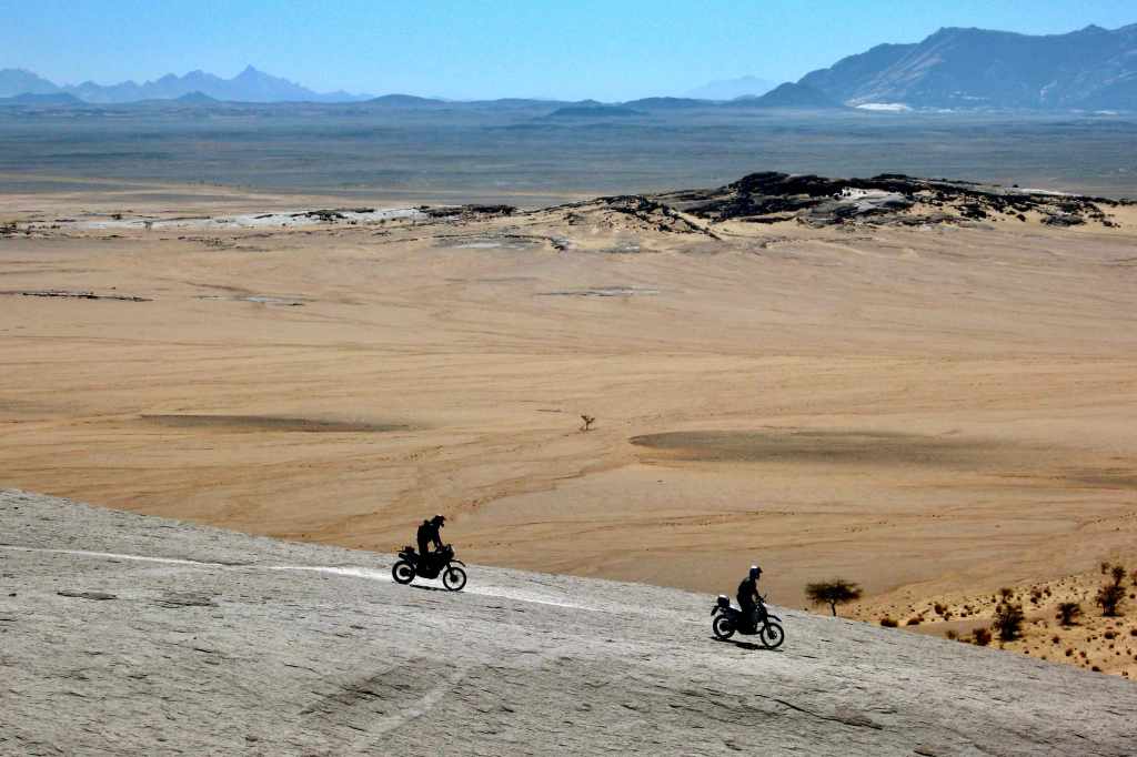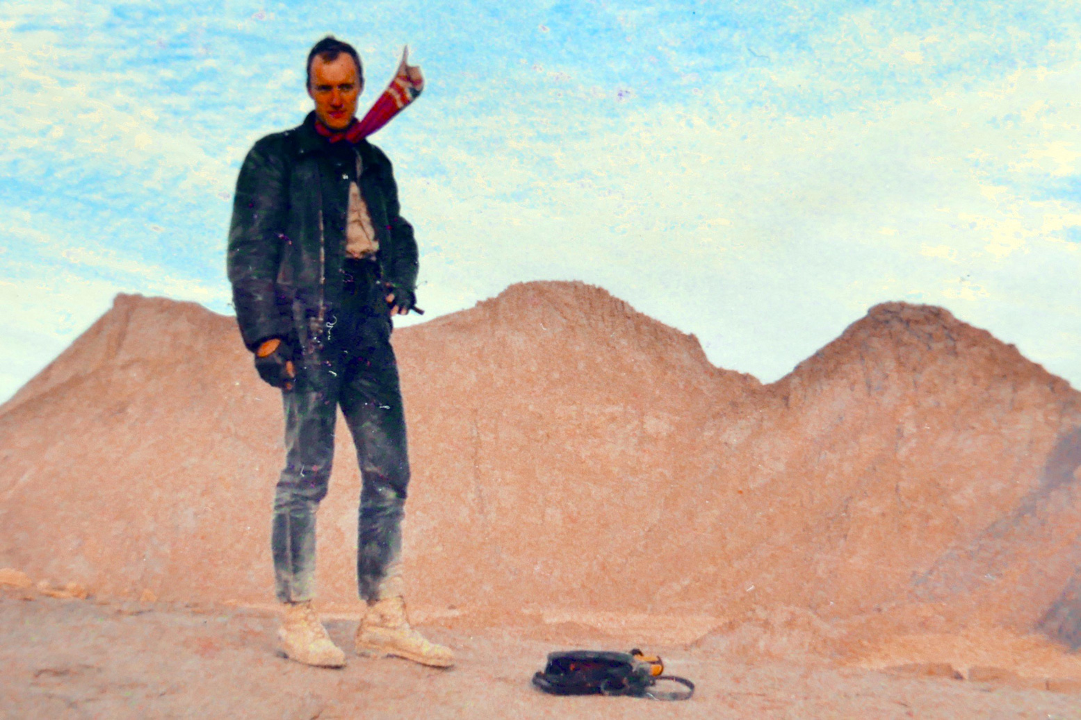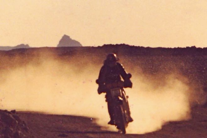 Mysterious Sli in 1982 on the XT500 trip.I finally got to Sli Edrar 17 years later from the other side while laying out fuel caches for Desert Riders.And in 2008 we had a fantastic afternoon riding Sli’s granite domes on one of my epic Algerian bike tours.The worse thing about those rubbish 2-ply Metzeler Saharas, was that I bought a spare. Back then there were no hard-wearing Heidenau K60s or Mitas E09s.In Tamanrasset I meet up with Helmut again and we take an overnight excursion up to Assekrem in the Hoggar mountains.Helmut on the R90. The overnighter was a good chance to test our bikes.Sunset from the Hermitage at Assekrem. ‘There was no one there..’.A chilly camp, high up in the bleak Hoggar.