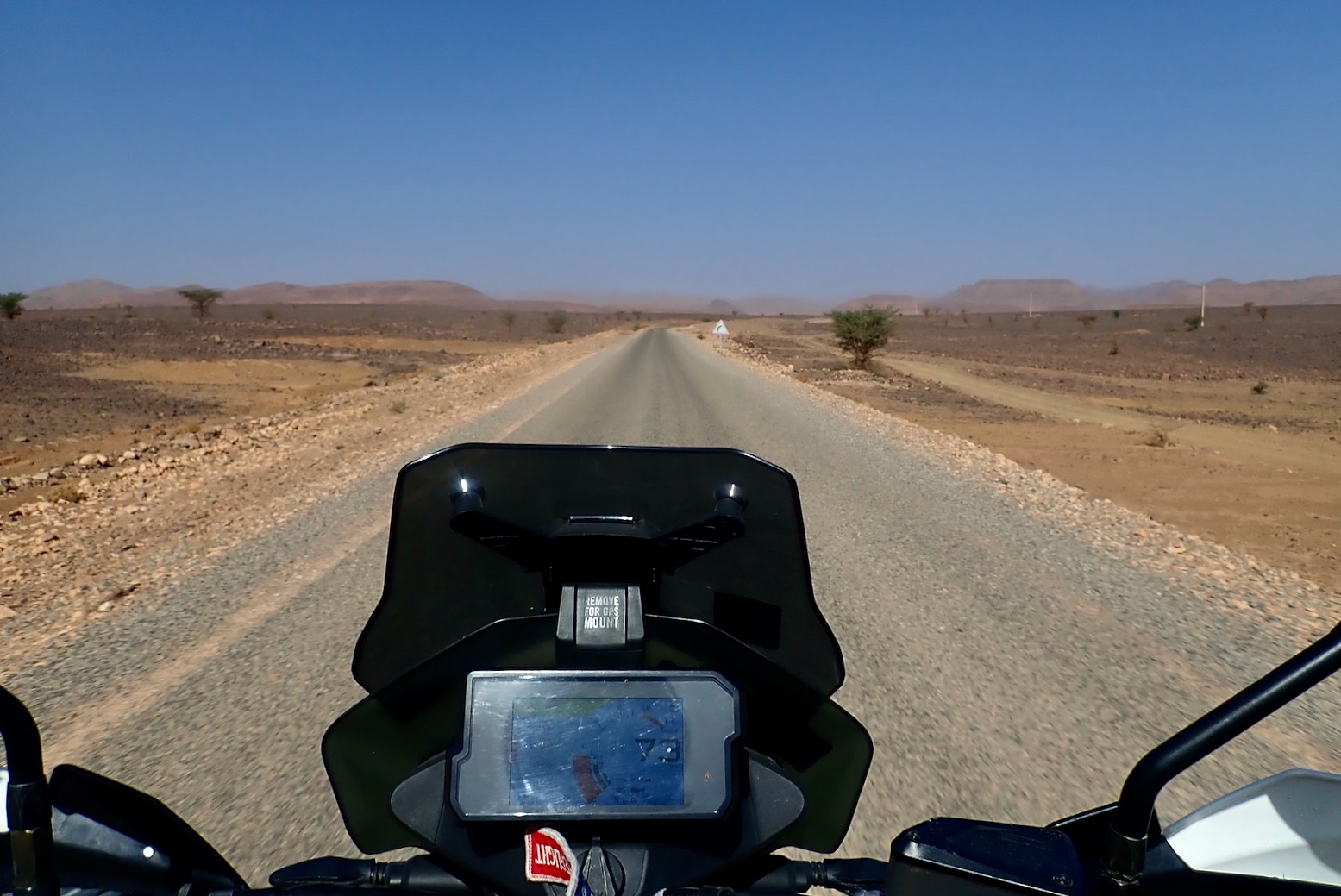 I fiddled a bit more with the engine settings second time – the menu is easy to use without RTFM, though I found the supplementary data too small to read easily on the move. I also found the fuel range was a vague ‘>190km’ instead of an actual figure, and as it emptied it had a habit of dropping by 30% when restarting the engine, then jumping up again. I was told many overly electronic modern bikes have this issue now; it’s not just a float in the tank anymore but calculated off your recent riding pace. On my last day’s ride I was certain that at up to 23kpl the tank’s 20 litres would easily do 400km to Marrakech, so trusted in my trip odometer and recent mpg readings rather than the flakey range reading.