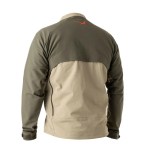 The light olive green body has a surface texture and a slightly lower gsm rating than the smoother, darker green shoulders and arms fabric, a polyester/Cordura mix that’s presumably more resistant to abrasion, though neither feel as tough as a regular Cordura jacket. Both have a bit of Spandex and the cut is bulky to accommodate separate armour which I don’t wear. Like the similar Adventure Spec Linesman, crashing hard in a softshell like this without armour will be painful.