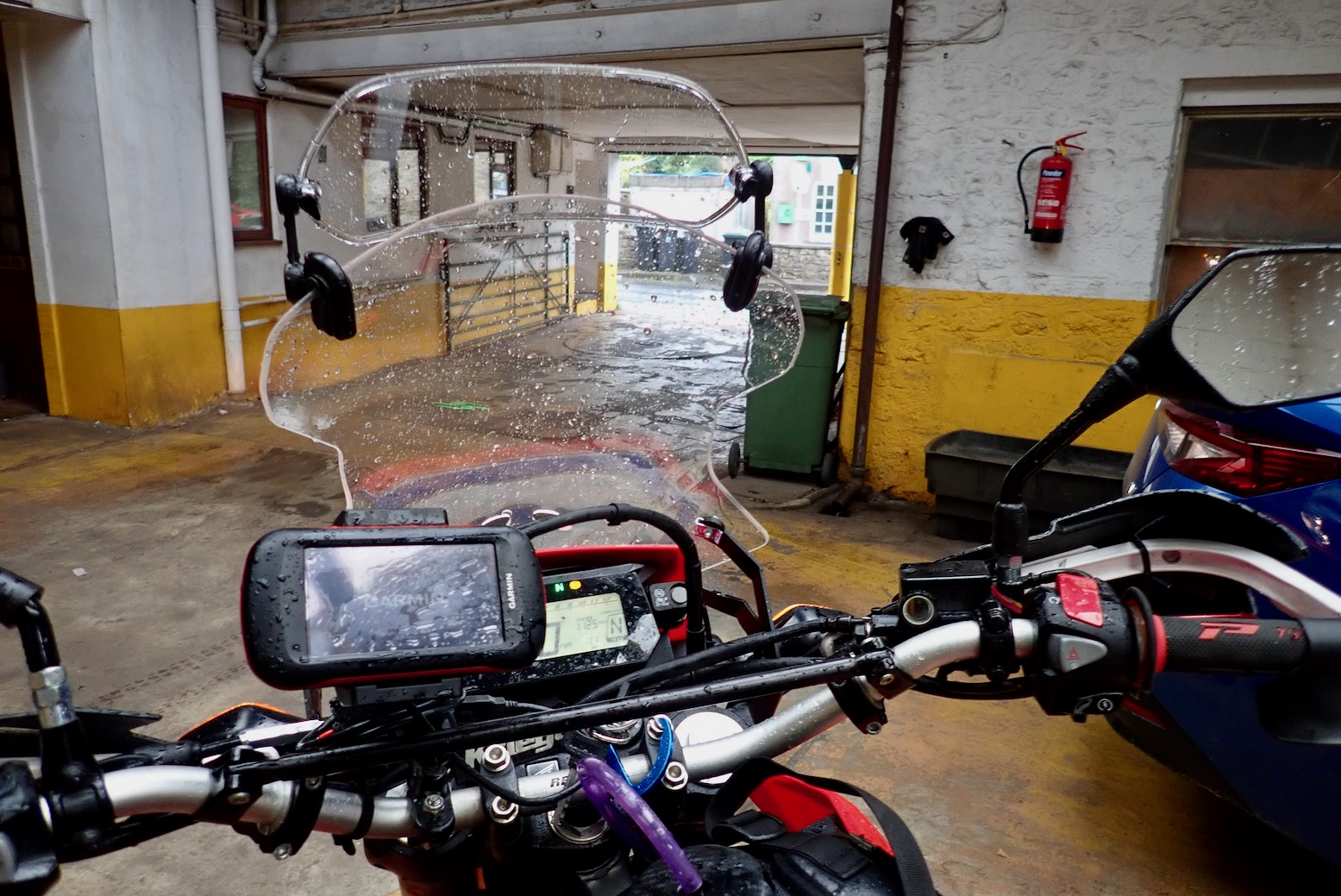 The stock tyres are good but I don’t think will prove very durable; iirc my CRF250L IRC rear didn’t even make 3000 miles in SW USA. As said, the Rally Raid suspension seems dialled in, or if not it won’t be hard to do so. I notice the throttle cables jam solid on full left lock as a result of the taller Renthals; to be expected for a stoop-free standing stance – without risers! Easy to fix or not that important. On the road it zips up to an indicated 60 – going faster needs a big yank on the handle; it’s a 286cc after all.