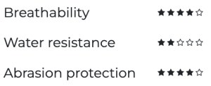 Durable, close-fitting stretchy and with removable armour, but some annoying features and better suited to temperate riding conditions.