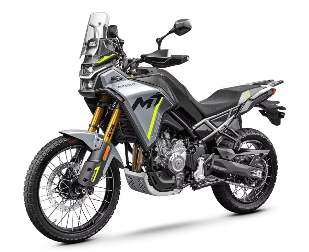Unlike a lot of over-designed Chinese Adv bikes – and some KTMs for that matter – the MT looks good, doesn’t it? Kiska, who work with KTM had a hand in it, and have done a much less eye-straining job. The pipe is not some hideous cannon, like Honda’s CT500, the lines flow and… I’d better stop before I get out of my moto design depth. A mini T7 without the nose bleeds. It’s a 42-horse unicorn.