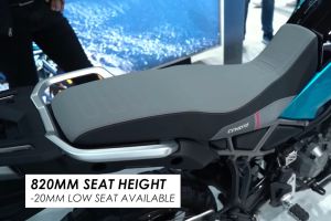 Low seat height. It does look low and the reviewers above say so too. The claim is 800-820mm adjustment stock or 31.5″/32.3″ in old money. So around the same as my old Him whose low saddle I still recall fondly. There’s an 870 mil bench seat option, too.