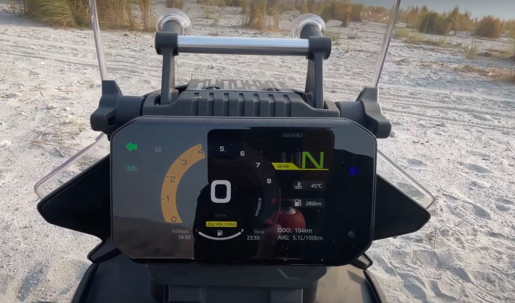 But while the MT is a new model, the 450 motor is out there already in CFMoto’s 2023 450NK and 450SS (and now a 450CL-C) road bikes (going for £5000 and £5600 respectively) and which seem to get the thumbs up. The MT gets detuned by ~10% to 44hp they say, producing more torque at lower rpm. They’ve thought through what’s wanted in a travel bike and it’s not a five-figure red line. So, I’m potentially sold on the motor; let’s list what I feel are some of the 450MT’s other highlights.