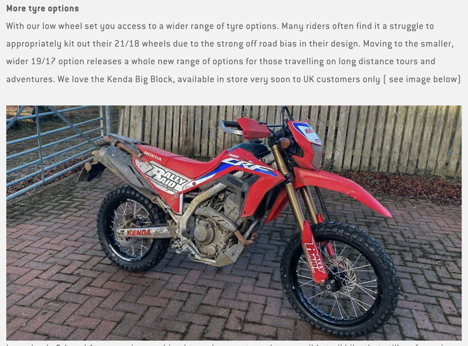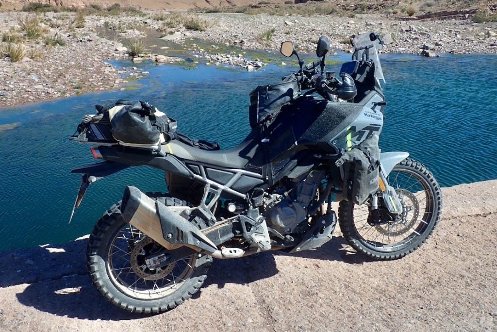 The chunky Kenda Big Block has been on my ‘tyres to try’ list for years, so when I set off for Morocco on my near-new 450MT last October, I arranged for a 140/80-18 (7.1kg) and 90/90-21 (5.2kg) to be dropped off in Marrakech, assuming the bike’s stock CSTs would not last long or soon degrade. I know John M from Rally Raid is a fan of the Kendas (below).