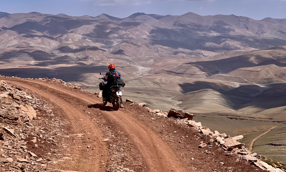 Still, all this grumbling didn’t stop Jon and me having a brilliant last couple of days in the High Atlas. We recce’d a new start to Stage N out of Imilchil that dodges a sometimes troublesome gully, then winged it off the map to discover a fabulous 50-km off-road crossing of the High Atlas back to the Dades valley, peaking at over 3000m. You really need to set the bike on full-power mode in this sort of terrain; the day or so we wasted in Eco we’ll never get back.