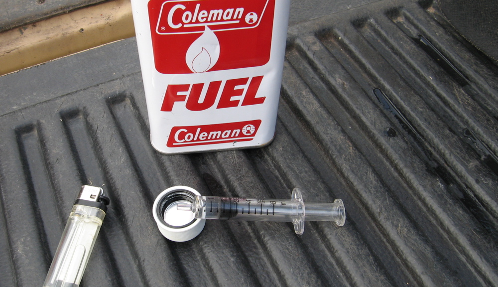 But not this time. Maybe it was something to do with the 4.00 18 Pirelli’s tall, thin sidewalls. Next, I tried the well known ratchet strap method, as I did on my XT660 years ago (below left). No luck. Rubbing my chin, I thought about the Icelandic method: injecting fuel through the valve hole, followed by a lit match. But that hadn’t worked on the XT either (below right). With the XT it had been just a matter of hours jiggling, pushing and pulling with the ratchet on, although having the brains to turn the car engine on gave the pump the extra poke it needed.