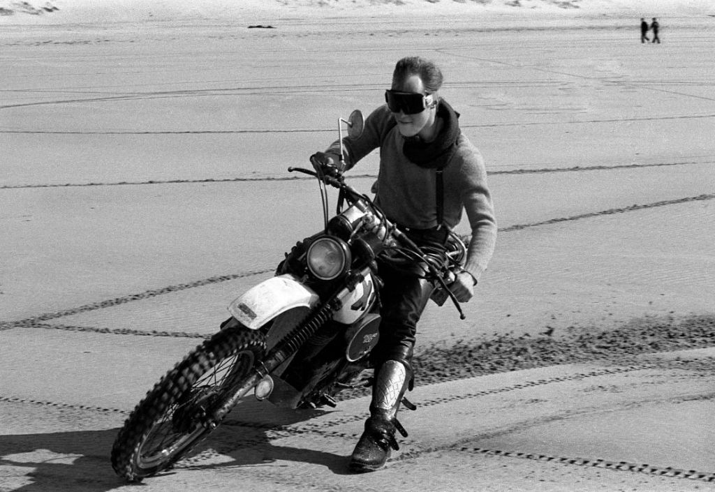 And the lugged ‘Vibram’ sole (left) will add grip when paddling or scrambling about off the bike. My smooth-soled Bajas were a pain in this regard, though a real dirt racer’s boot would have a smooth sole for crossed-up broadsides, like I was practising below (1970s Alpinestars Super Vics).