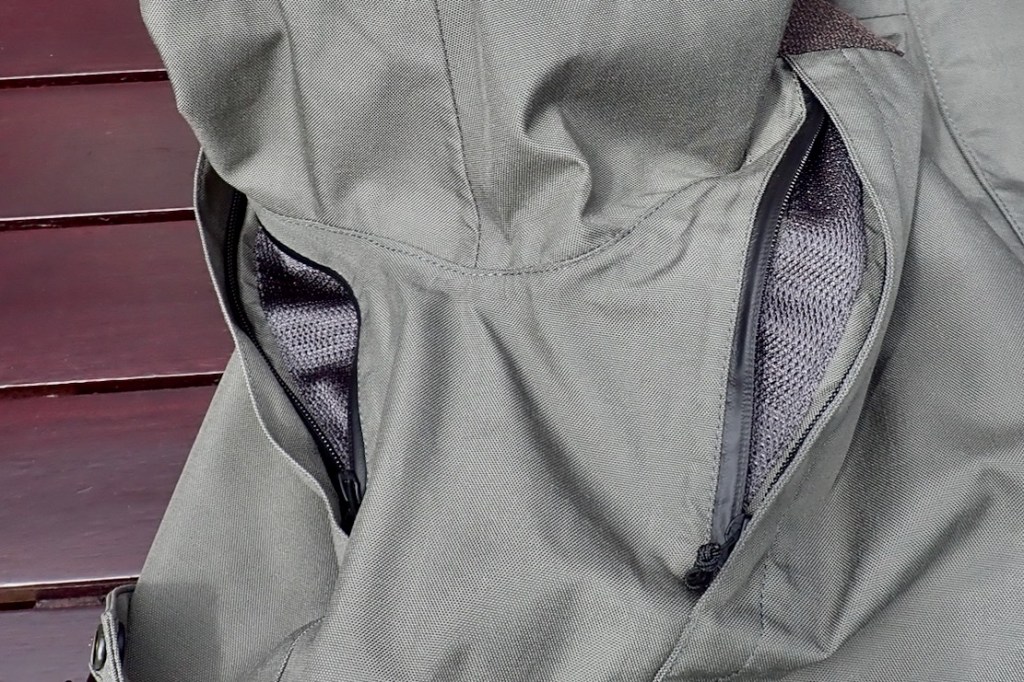 Apertures are on the small side and will be better than nothing, but as on other jackets, the trend for mesh backing means they can’t open fully to get a flow on. For more venting you might as easily open out the cuffs and unzip the one-way front zip, then do some of the poppers back up. Or, do as Dave did in the Comments, and cut open the mesh to maximise the flow.