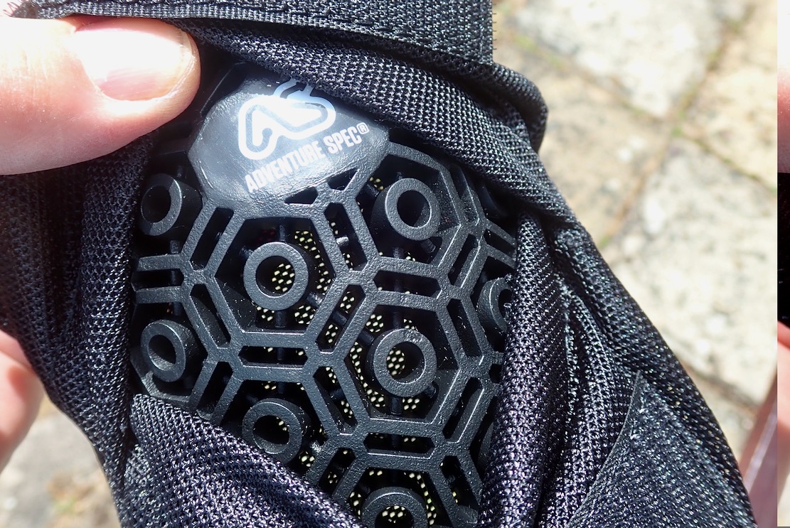 Armour Underneath and inside, five pieces of A-Spec-branded armour sit in pockets velcro’d to the shell’s interior. I wonder if an included back protector is mandatory to secure a CE AA rating. While good insurance for high-speed crashes, as said, I found the Gravel much more comfortable without the back plate (as I do with most jackets). On the scales this back pad weighed 565g, or over 20% of the jacket’s overall weight.