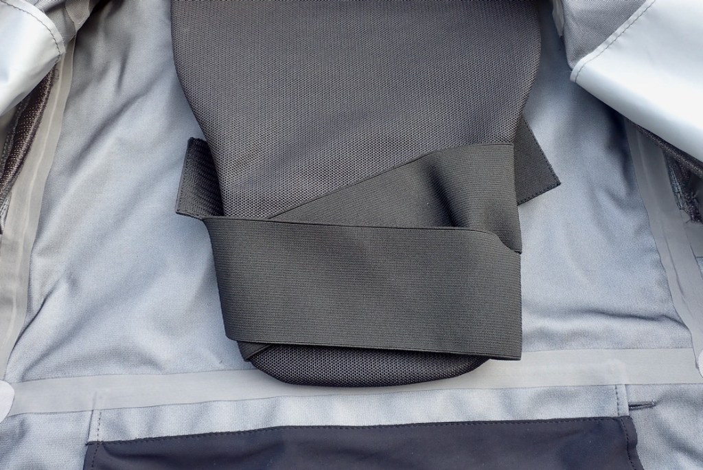Front one-way zip is double storm flapped with an added ‘gutter’ fold on the inner flap to slow down water ingress