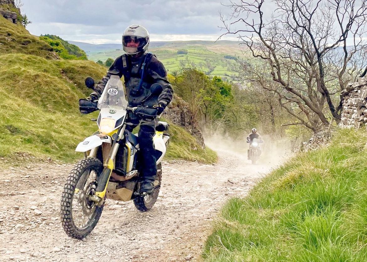 Do all-terrain motos really need dynamic seat height adjustment? Well, until MTB droppers came on the scene, I’d have said no and managed by manually dropping saddle for rough descents. On a moto, a high saddle – or a long peg-to-saddle distance – reduces the effort of standing up and is why competition bikes have yard-high saddles: dirt racers are on the pegs most of the time. Those bikes are of course feather light and easy to manage in the rough. Bring a similar saddle height to a 230-kilo loaded travel bike, like the Desert X Rally I rode with (below), and tackling rough stages requires skill and commitment, assisted by plush suspension and good armour. I rarely have all four, but I do find some low saddles (above: Him 450) a bit hard on the knees, even if I can reassuringly get my feet down.