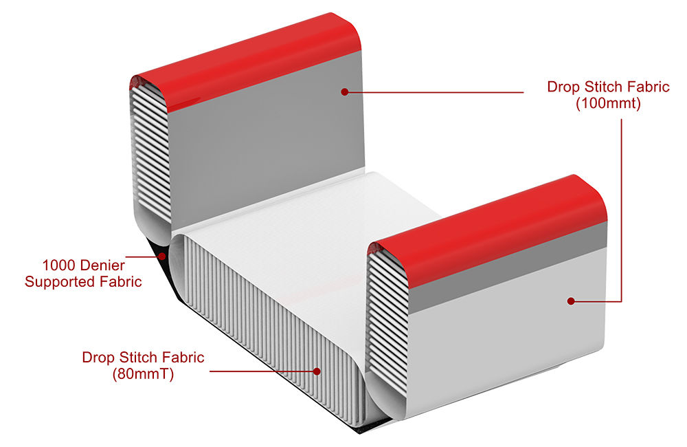 Drop stitch panels hold much higher pressures than tubes (15psi+ vs 3psi on I-beams) while retaining the flat panel shape. The result is hardshell-like rigidity with the transport and storage convenience of a roll-up kayak. Years ago, Goodyear even developed a drop stitch airplane for the US military.