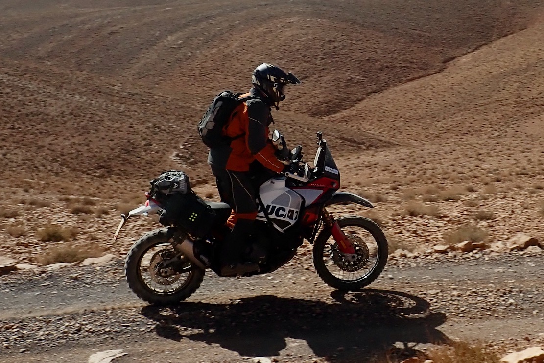 Taking Mohamed to the mountain by wearing cycling shorts is a well-known dodge that works OK, but they’re designed to reduce rubbing from rotating legs as well as supporting your weight. I find the foam padding too soft. Moto Skiveez (US slang for underwear) have been around for years and I finally connected the dots and got myself a pair. The true test was the long, unbroken road ride back to Europe in the spring and they worked there too, but after weeks bashing about in the High Atlas and Saghro, I have to say they do make a difference. I don’t tend to stand up which makes things worse, but I didn’t end the days butt-sore as I’ve done these last few months.