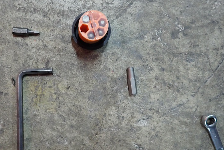 My Serow Touring came stock with an old-school alloy tube tailrack and light-gauge steel side frames (left) which are way too far back as usual, but otherwise ideal for stabilising the low weights I typically carry in Morocco, lodging each night, as I do. Out of the box I could see issues fitting the Alpine 60s onto my racking, but could also see a solution.
