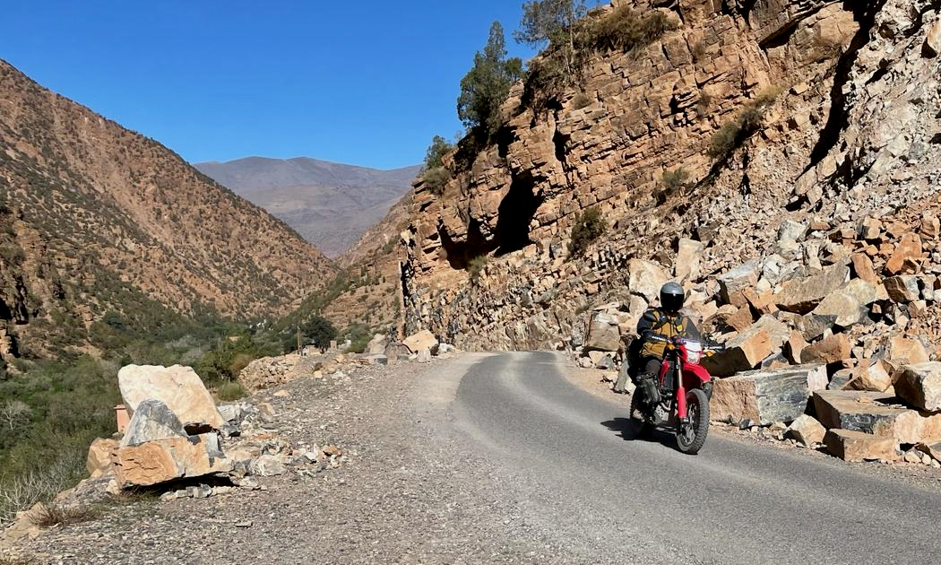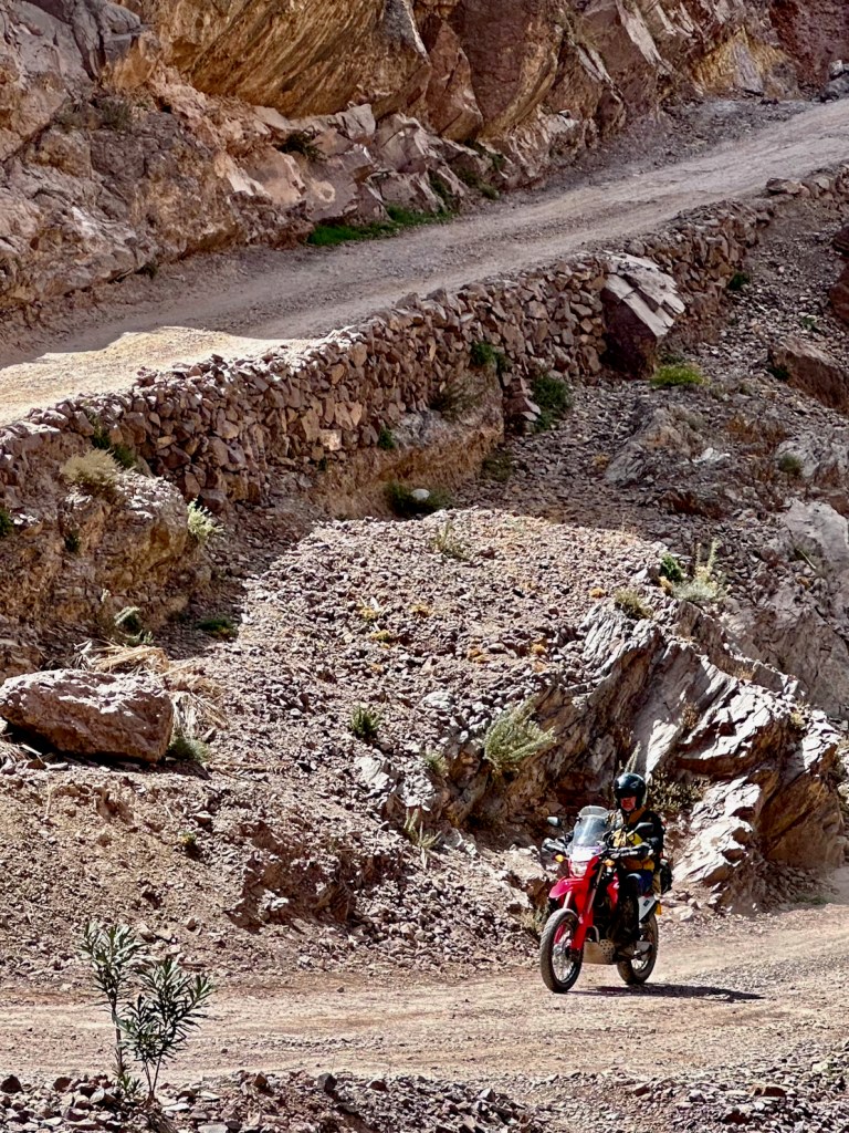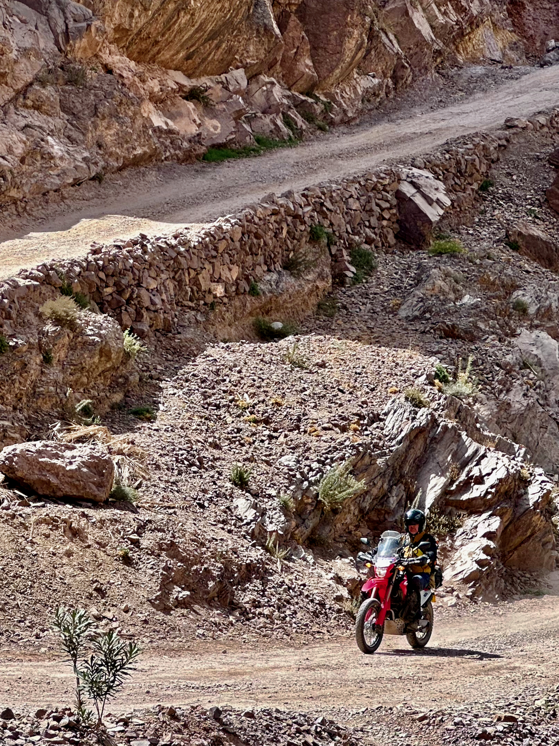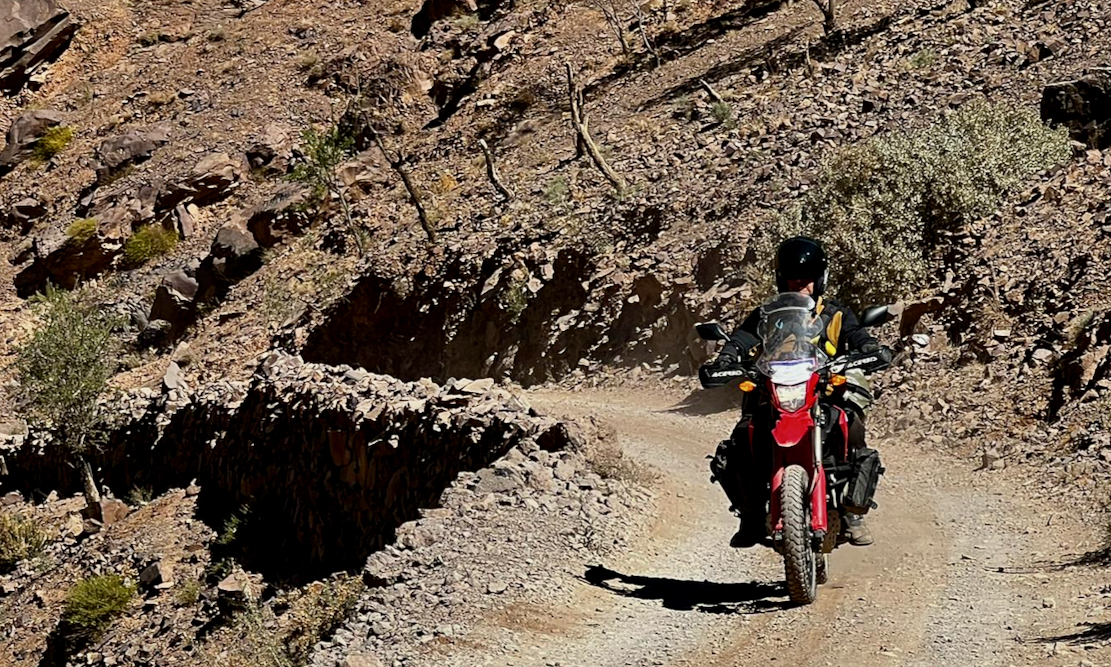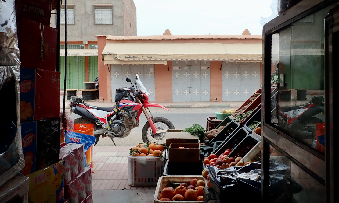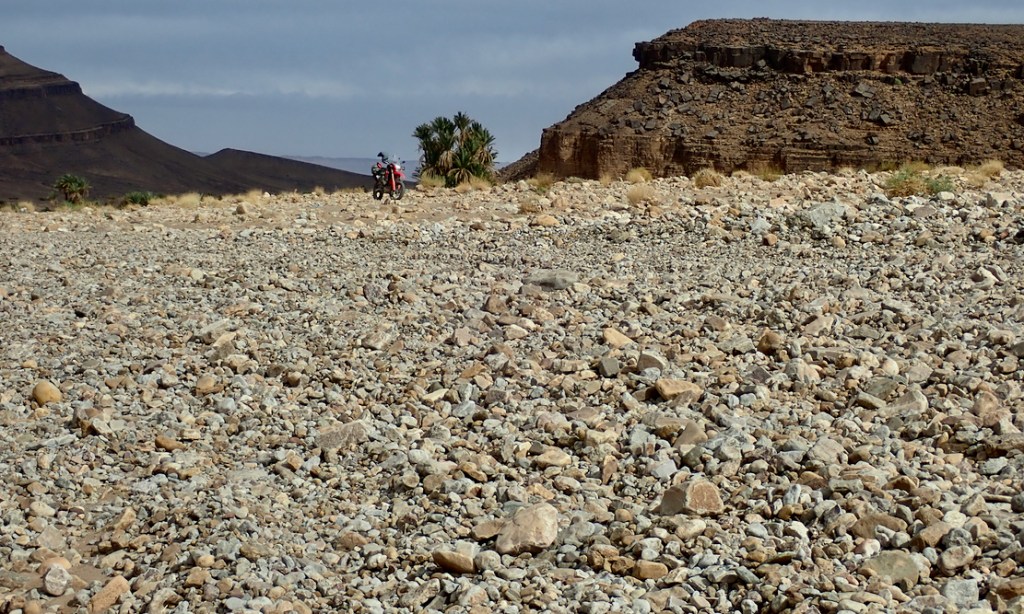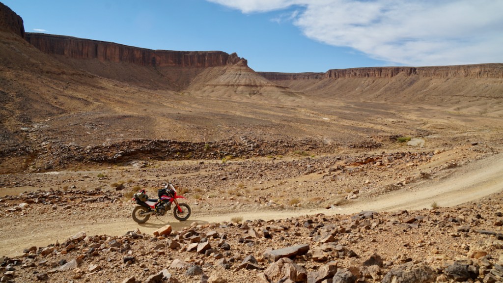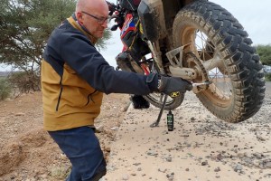 Set up this way, removing the whole rig is a 10-second job (discounting the duffle), while secure mounting in the morning might take as long as 30 seconds, so make sure to set the alarm. I’ll take q/d soft bags if they have a bombproof and foolproof attachment system which can be used daily without thinking too much. Otherwise, most nights in Morocco I leave partly loaded bags on the securely parked bike and bring what I need into the room.