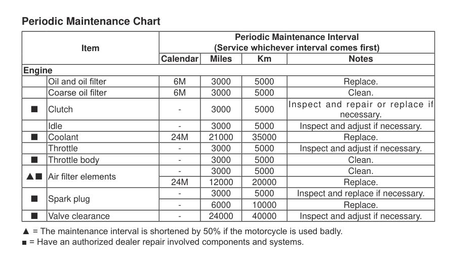 One chipped gear tooth in the ointment are oil changes at 3000m/4500km and even new plugs at 6k. Oil capacity is 2.5L (specs above) which seems to be adequate – surely it’ll last longer than 3000 miles or super modern semi-synthetic oil? Or is it a dodge to cover/pay for the claimed 4-year warranty? No regular 3000-mile service with oil change – no warranty, sir. My 300L ran 8000 miles on 1.8 litres (though I didn’t leave it that long). An NX500 is also 8000 miles but on 3.2 litres. My Him 400 was the same as the MT plus over-frequent valve clearance checks, but that was a relatively basic air-cooled motor.