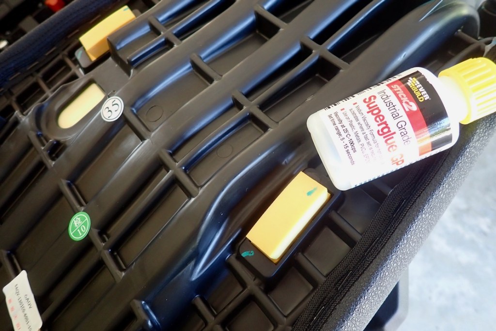 Internet chatter brought up a couple of minor flaws. The small blocks of foam that support the seat fall out easily and need gluing in (above right). And water seems to collect in the front subframe tubes which support the bash plate and horn. OMG: the frame will rust out and snap in half! Not really: these are non-load bearing subframes which are easily removed, drained and dried if necessary, then given a shot of ACF-50 before plugging the offending hole. I did that before leaving for Morocco but on the way back the dealer service in Spain drilled the tubes to drain as per a service bulletin. I’d rather they’d not done that as I’d already fixed it.